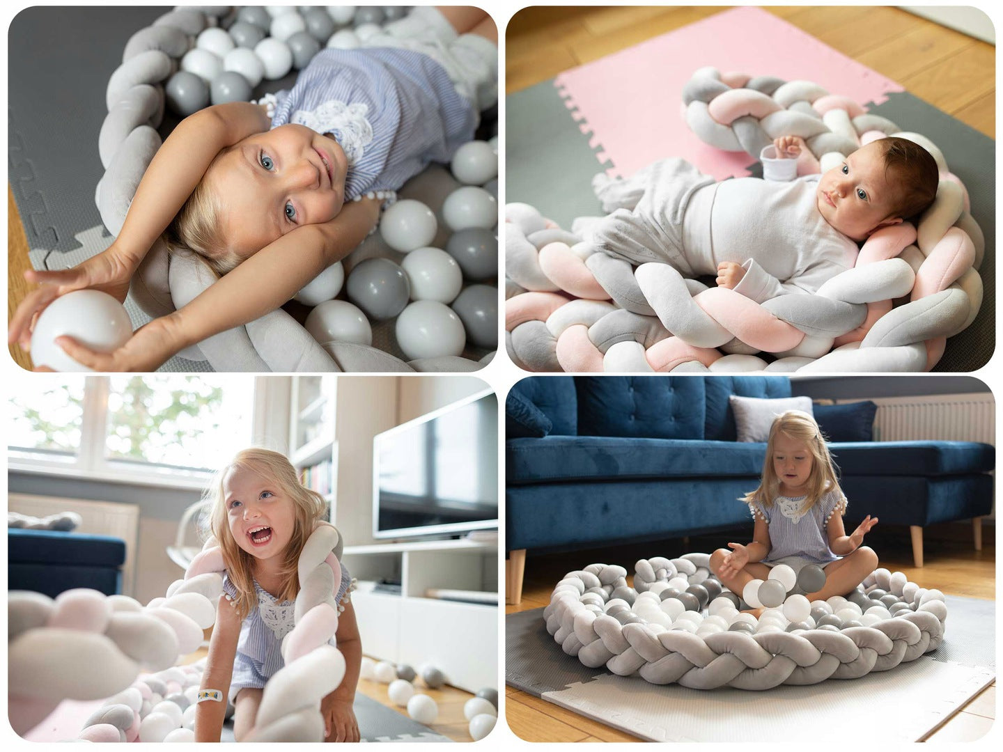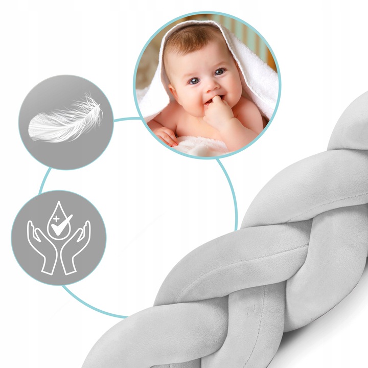 Bumperul de 3 m lungime are un rol important si in protectia capetelor lor mici de lovituri si vanatai ce ar putea fi provocate de marginile rigide ale patutului. Poate fi folosit si ca un cuibusor in primele zile de viata sau decor original pentru camera copilului.