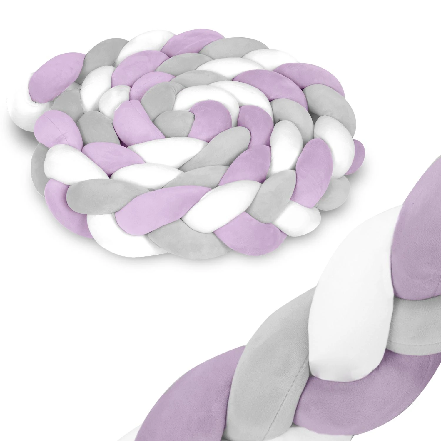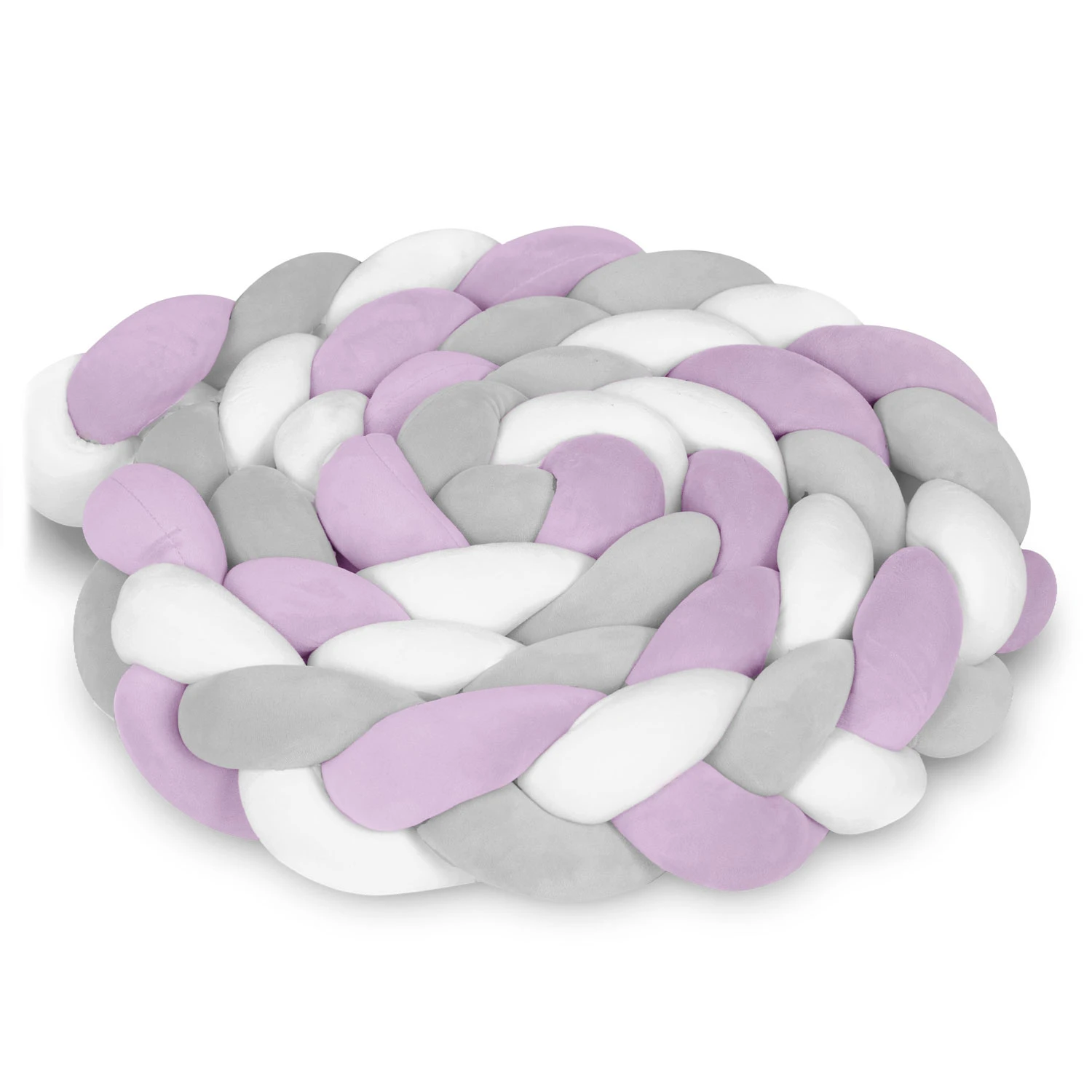 Protectie Laterala pentru Patut Bumper Rico idealSTORE, Lungime 3 m, Material moale, Placut la atingere, Protejeaza impotriva curentilor de aer si a loviturilor, Antialergic, Mov-Gri