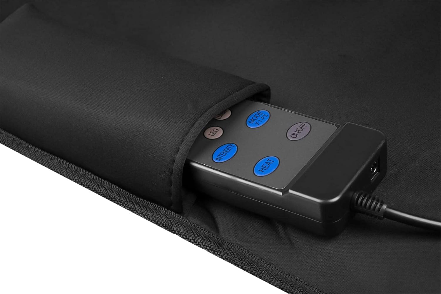 Toate functiile saltelei de masaj cu functie de incalzire pot fi gestionate folosind telecomanda inclusa in set, care poate fi ascunsa intr-un buzunar special in timpul masajului.