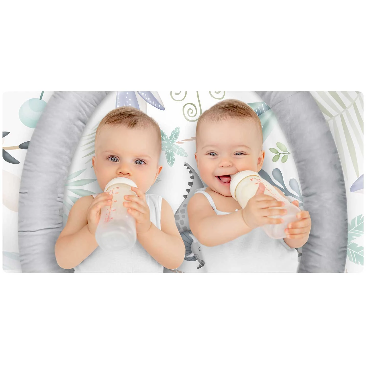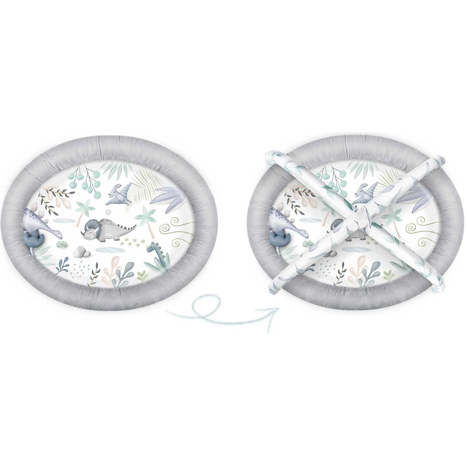 Salteluta interactiva pentru copii ideal STORE Be Happy, 7 jucarii incluse, perna cu suprafata moale, Sprijina dezvoltarea stimulilor vizuali si ofera provocari fizice care vor ajuta la dezvoltarea abilitatilor motorii, gri