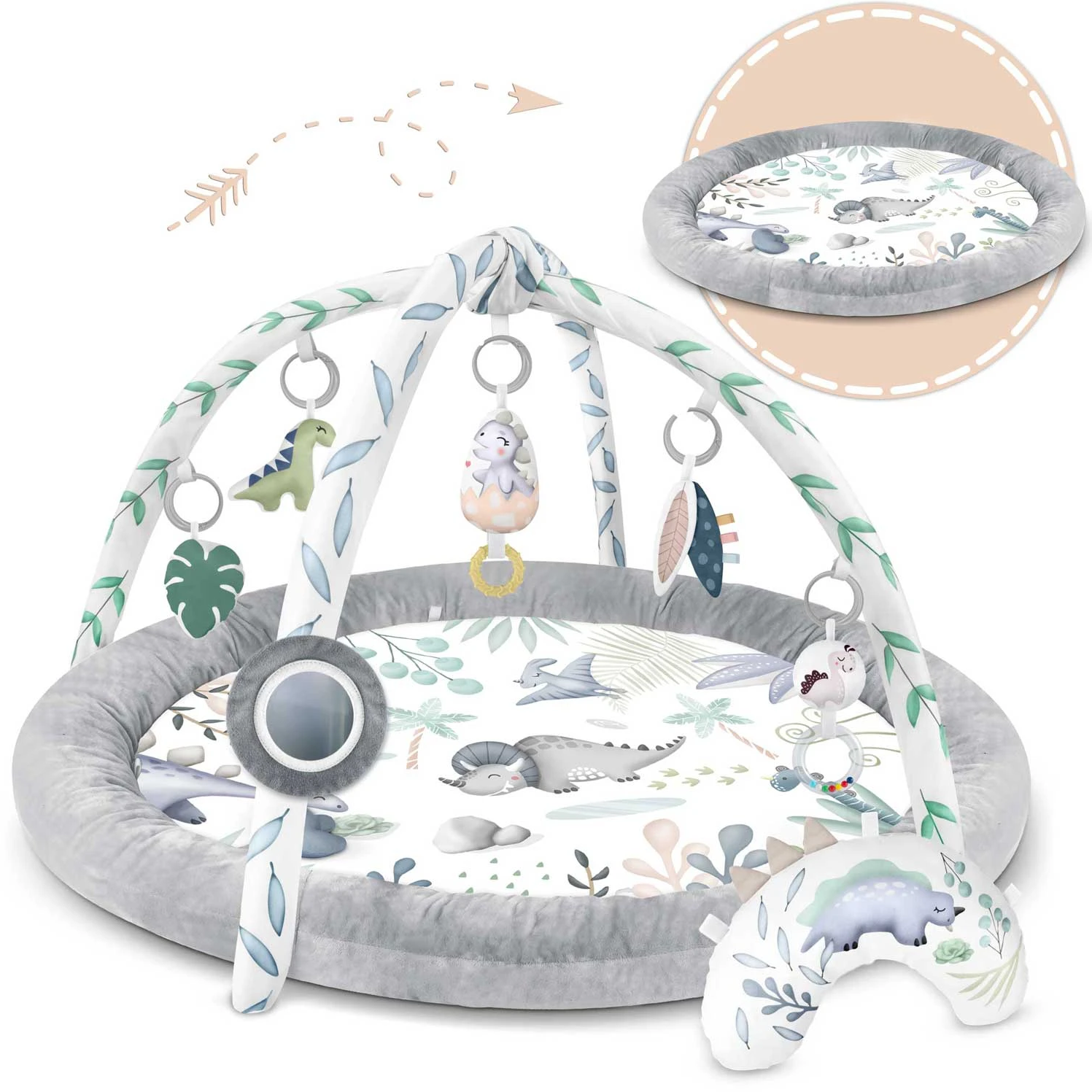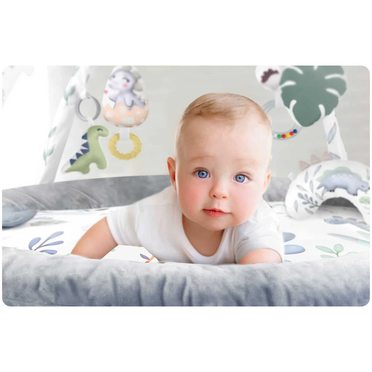 Salteluta interactiva pentru copii ”ideal STORE Be Happy”, 7 jucarii incluse, perna cu suprafata moale, Sprijina dezvoltarea stimulilor vizuali si ofera provocari fizice care vor ajuta la dezvoltarea abilitatilor motorii, gri