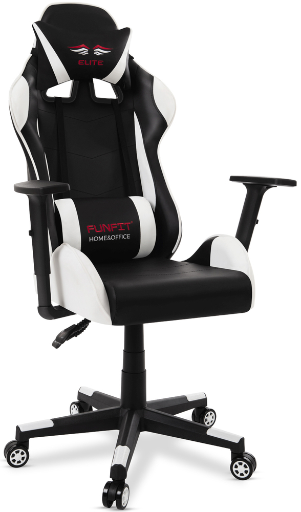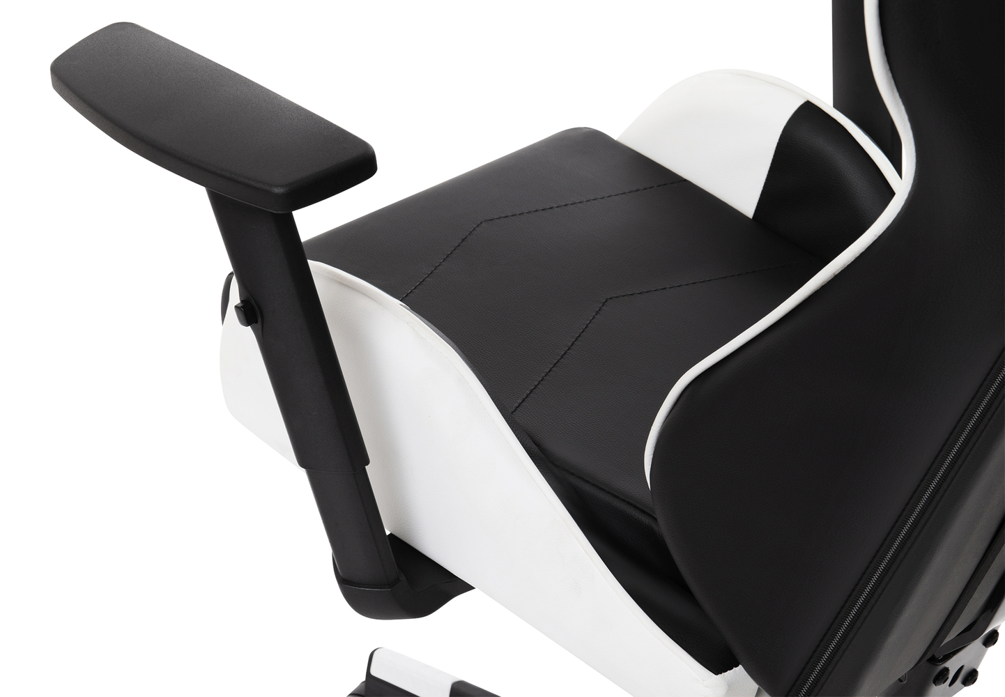Scaun Gaming Reglabil cu mecanism TILT idealSTORE Elite COLLECTION, Asigura pozitia si confortul corect al corpului, Cotiere reglabile, Perne confortabile, Posibilitatea modificarii unghiului spatarului, Alb-Negru