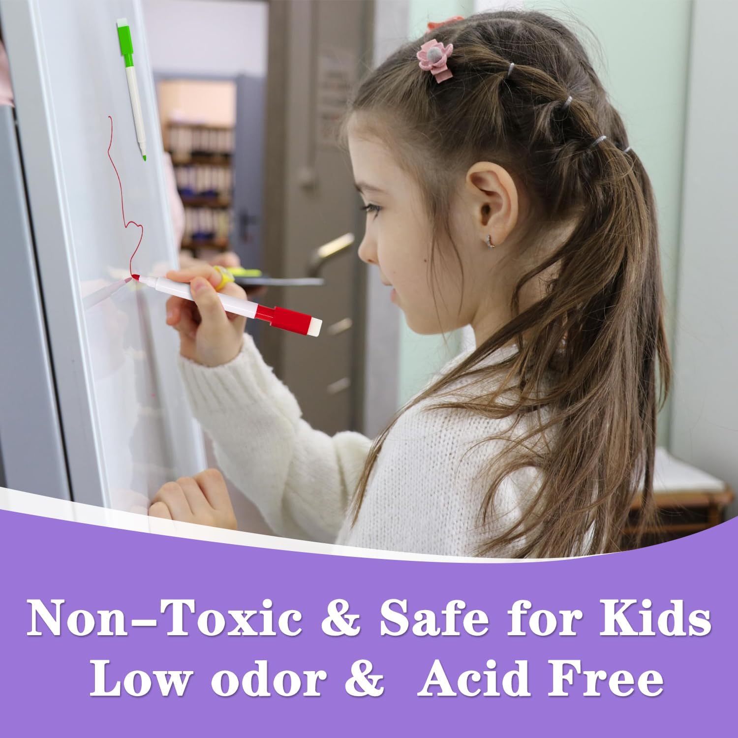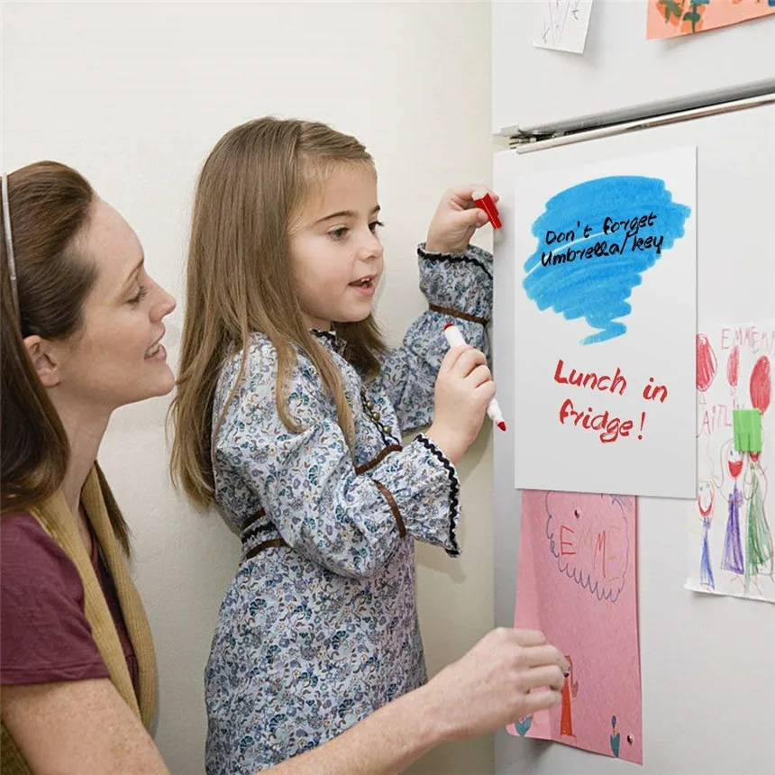 Sigur si cu miros redus: markerii nostri cu stergere uscata cu punct fin sunt pe baza de apa, non-toxice, cu miros scazut, rezistente la pete si sigure. Proiectat cu un magnet puternic si un capac de stergere, markerul subtire de stergere uscata este foarte convenabil pentru a fi folosit acasa la tabla alba a frigiderului. Usor de indepartat si curatat, nu va pata mainile sau hainele intunecate.
