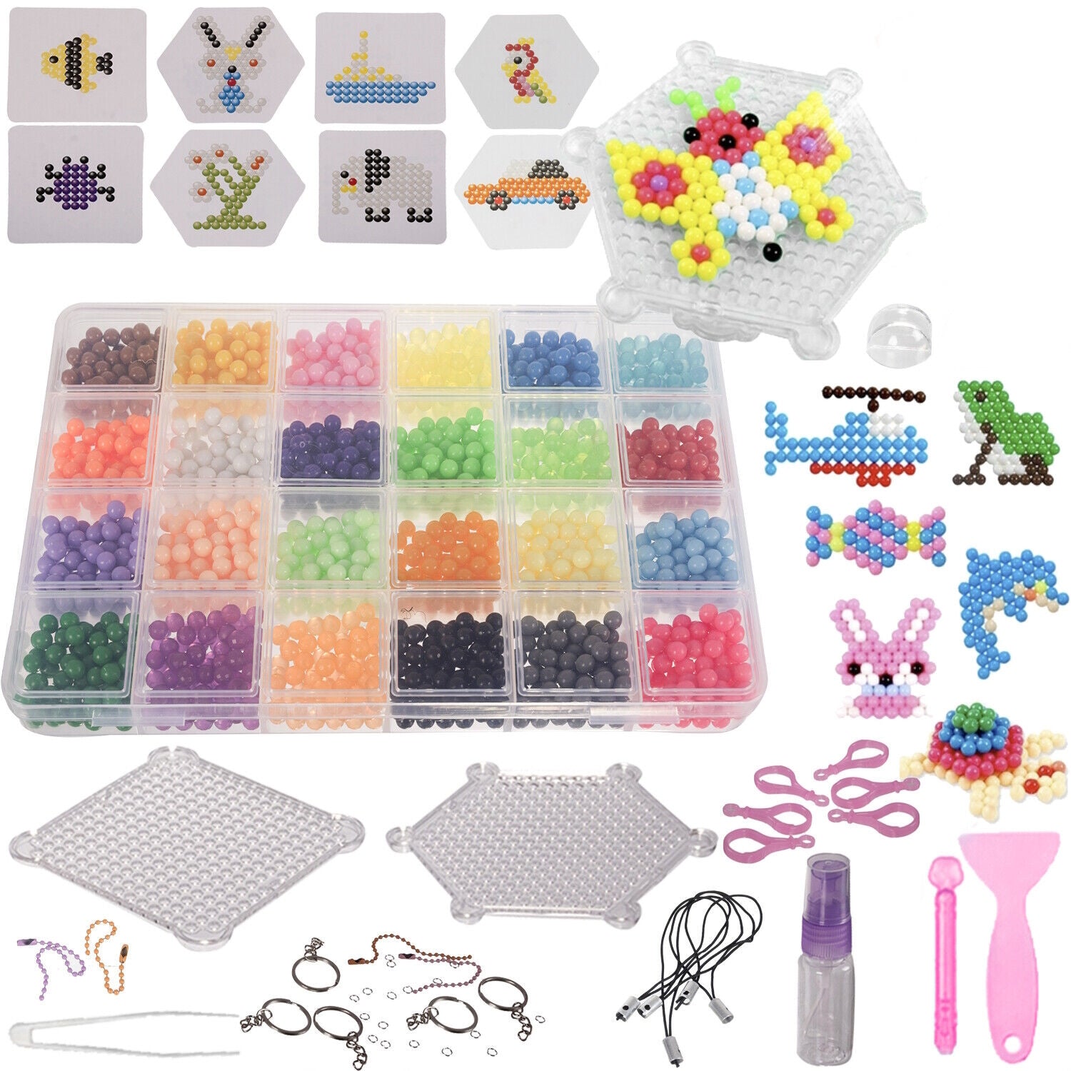 Set 2800 Margele idealSTORE, modele 3D, Lipire prin Stropire cu Apa, 24 de Culori Diferite, Include Modele si Sabloane, Pandantive, Dezvolta Concentrarea, Creativitatea si Abilitatile Artistice, Multicolor