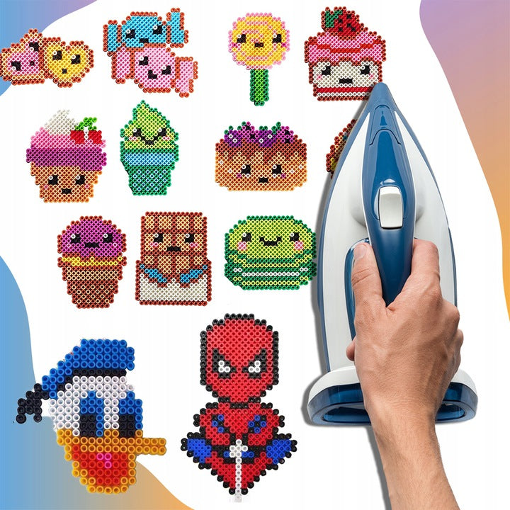 Set 5000 Margele de calcat Iron Beads idealSTORE, Include Sabloane, 10 suporturi de calcat, Hartii de Calcat, Penseta, Culori Vii, Posibilitatea de a construi diferite modele, Dezvolta Concentrarea copilului