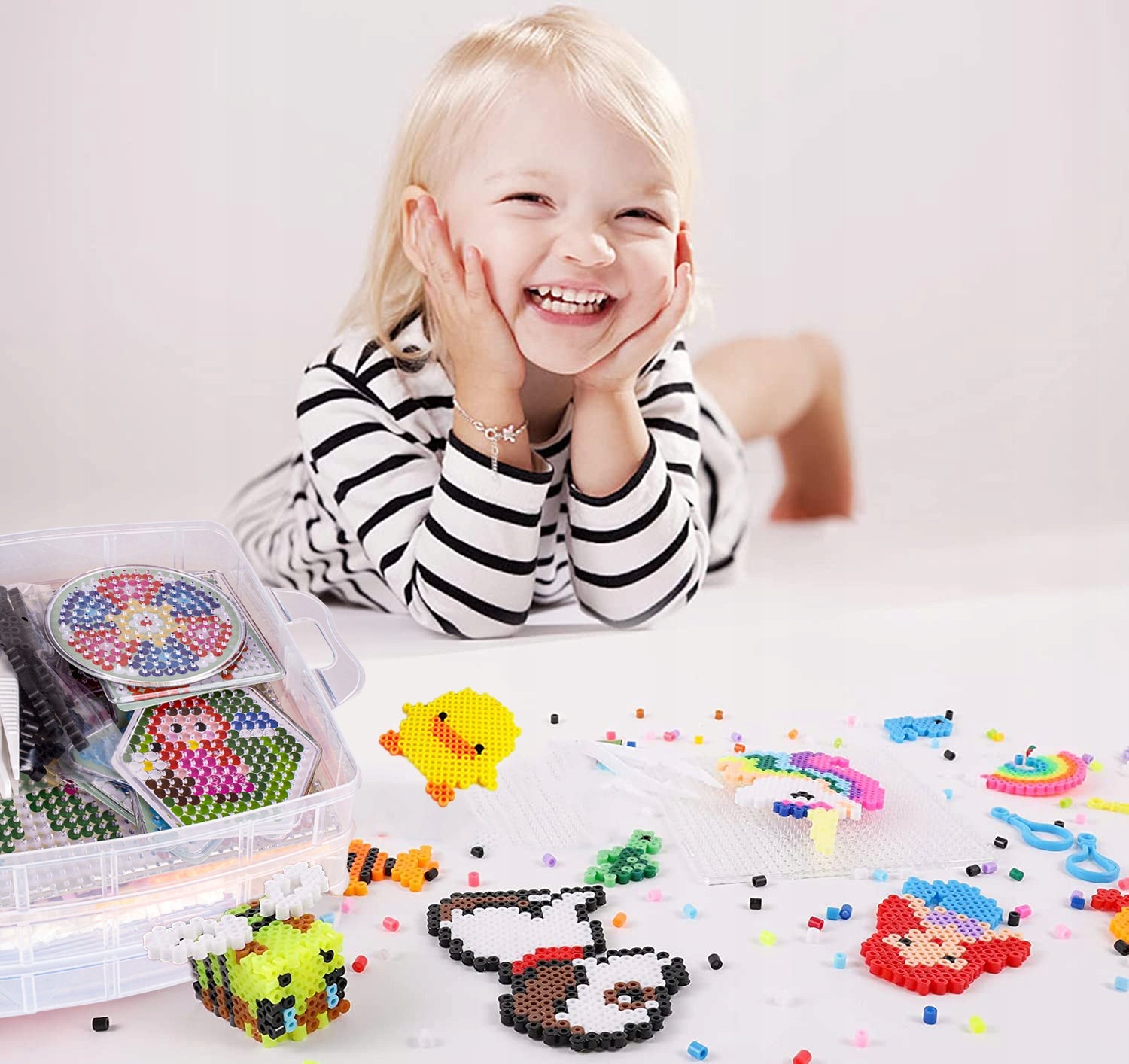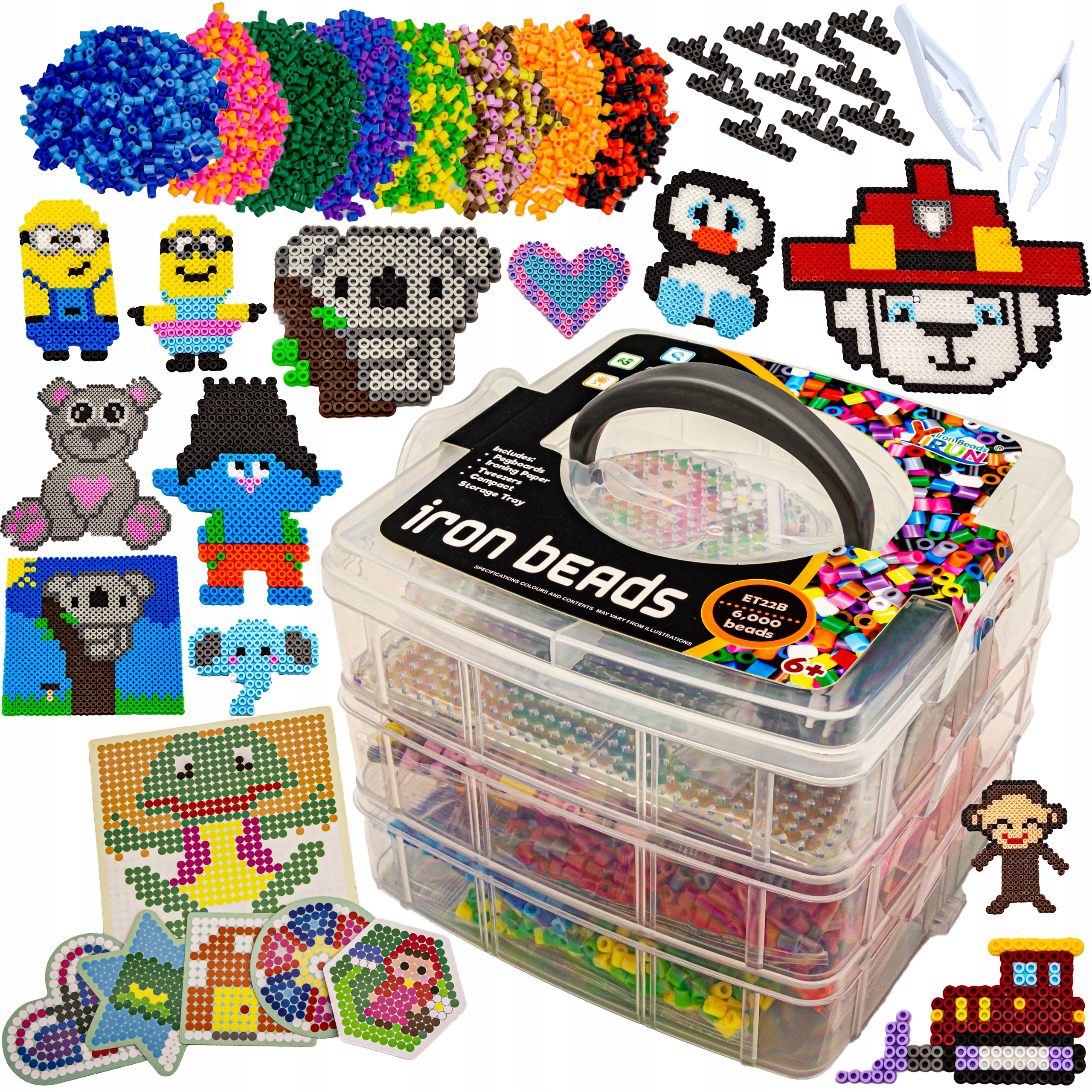 Set 6000 Margele de calcat Iron Beads idealSTORE, Include margele de diferite culori, Sabloane pentru crearea modelelor, Pensete, Tampoane negre, Hartie de calcat, Dezvolta Concentrarea copilului