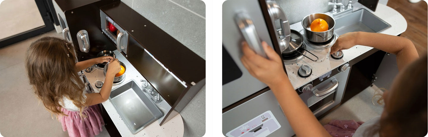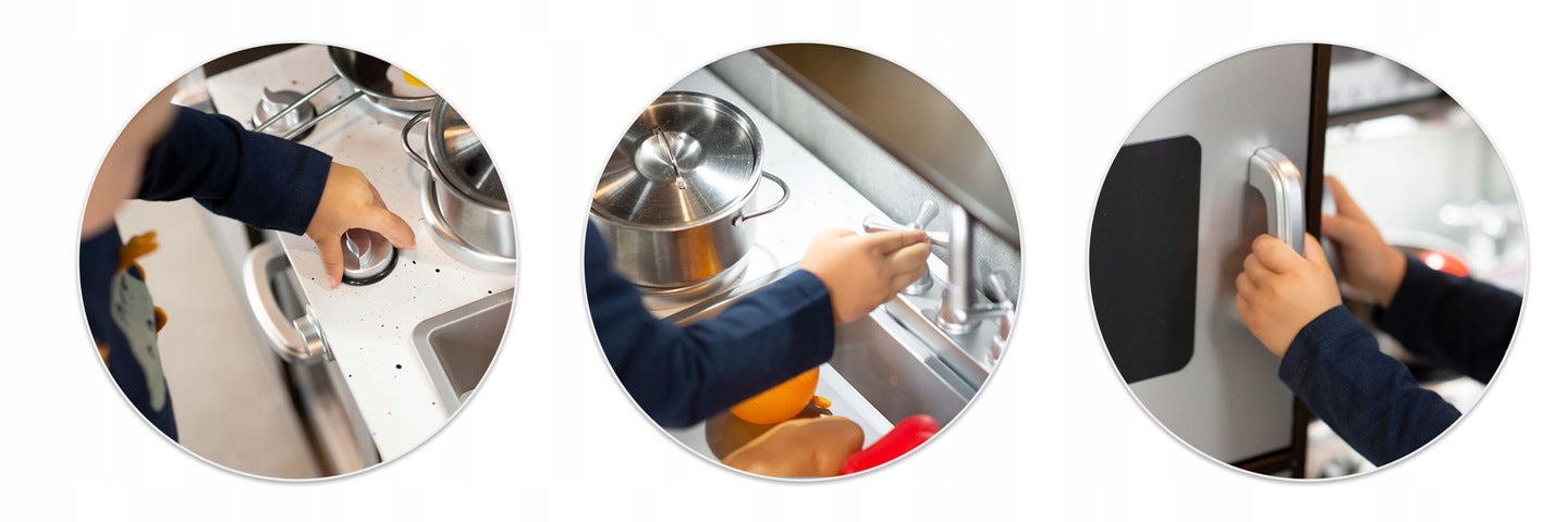 Ultimul model de bucatarie din lemn va oferi copilului tau distractie si ii va influenta foarte mult dezvoltarea. Datorita elementelor interactive, copilul va invata independenta, cooperarea si isi va dezvolta creativitatea.