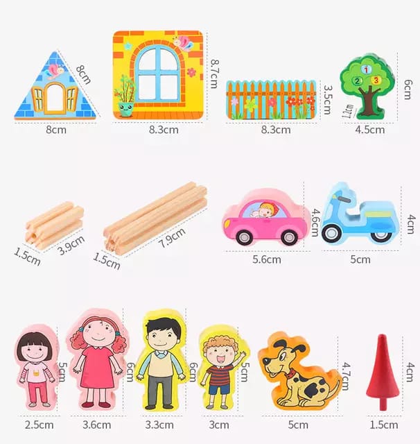 De asemenea, piesele vor ajuta la recunoasterea culorilor, formelor si vor invata multe cuvinte noi legate de cladiri.