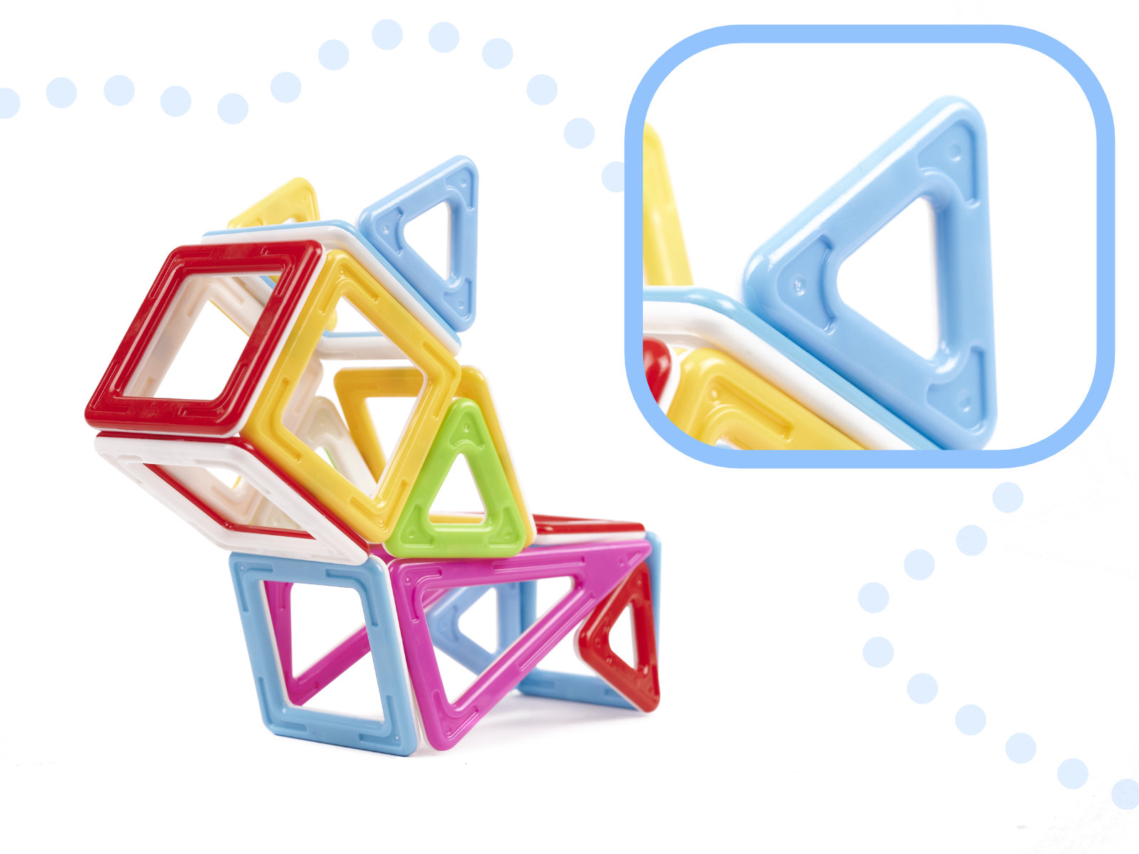 Blocurile de constructie Blocks Magnetik 3D IdealStore permit multe posibilitati de distractie - pot fi asezate plat sub forma de forme 2D sau creand spatial cladiri, figuri spatiale.