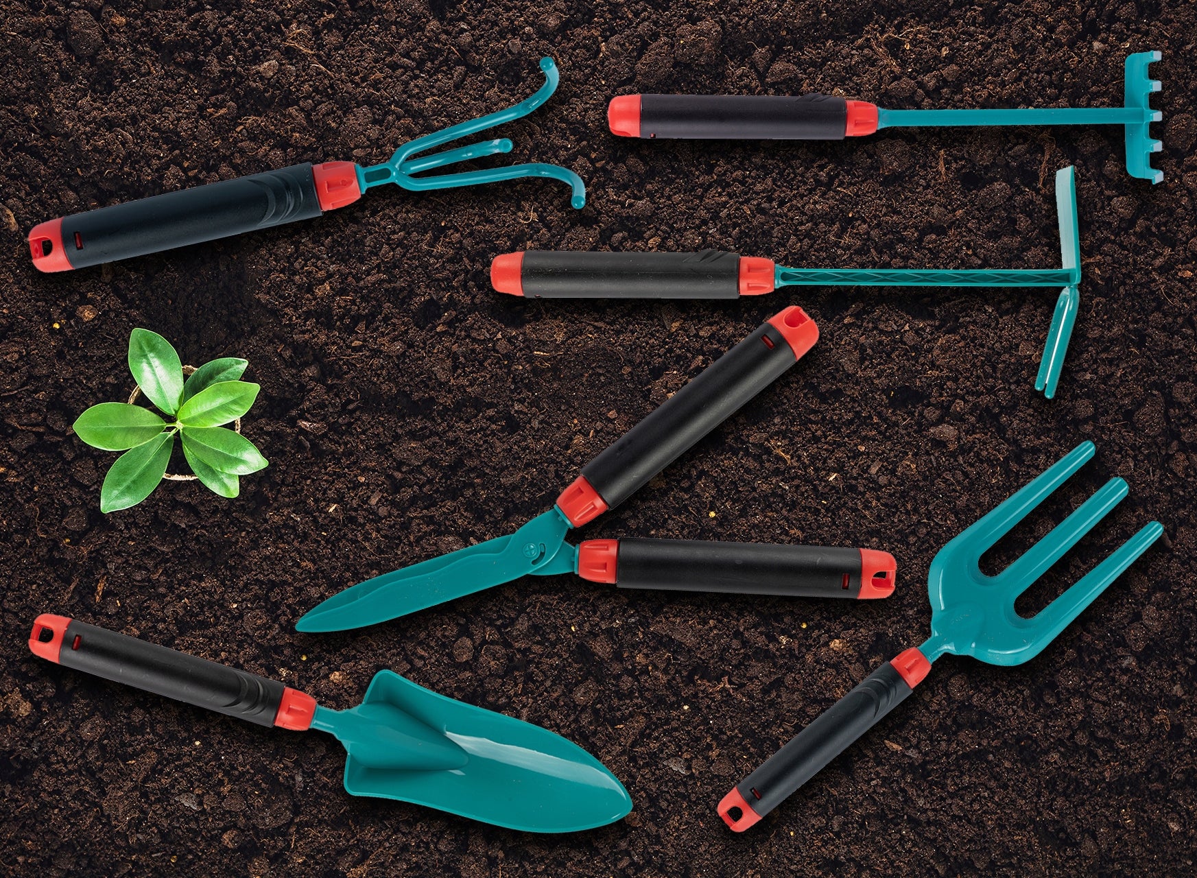 Setul perfect de unelte de gradina din plastic cu care sa se joace copiii.