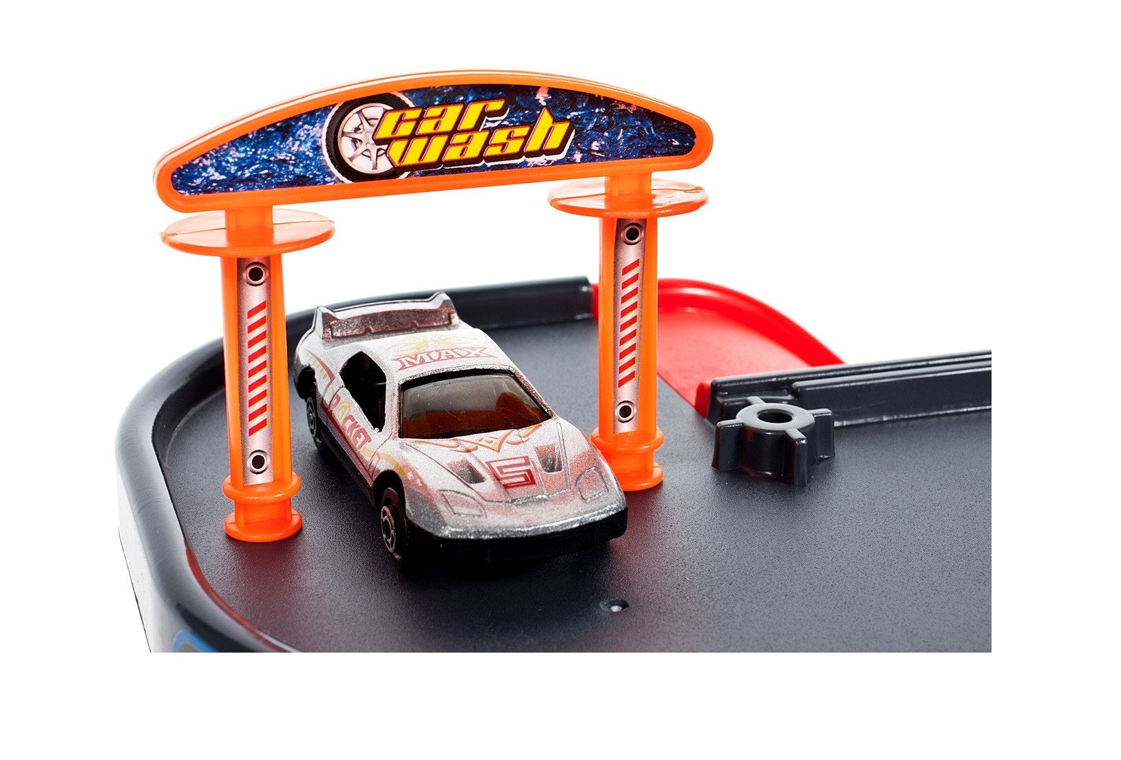 Are 2 lamele si un set de semne, plus o statie de reparatii, o benzinarie si o spalatorie auto. Parcarea are 3 masini din plastic si un autobuz metalic.