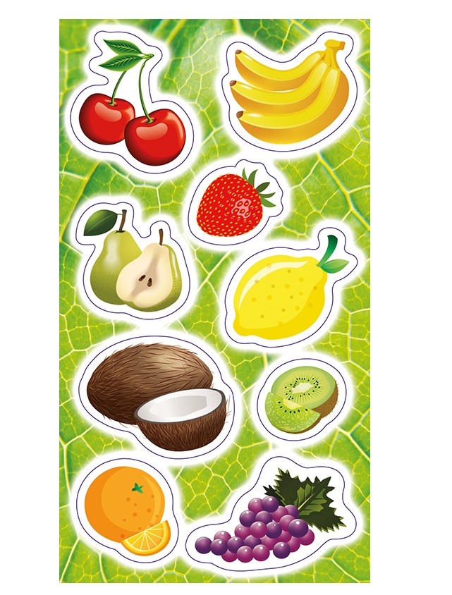 Leitmotivele sunt fructe gustoase. Acesta nu este doar un cadou ideal pentru copii, ci si un instrument educational excelent. Datorita autocolantelor, un copil poate: