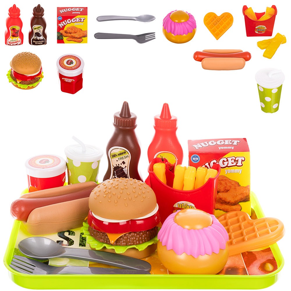 Acest set unic de jucarii fast-food va permite oricarui mic bucatar sa va intinda aripile si sa va deschida propriul restaurant. Este format din 26 de elemente cu ajutorul caruia micutul tau va crea singur o masa delicioasa Acesta include, printre altele, o tava, ingrediente pentru un burger, tacamuri, dulceata sau cartofi prajiti. Setul va