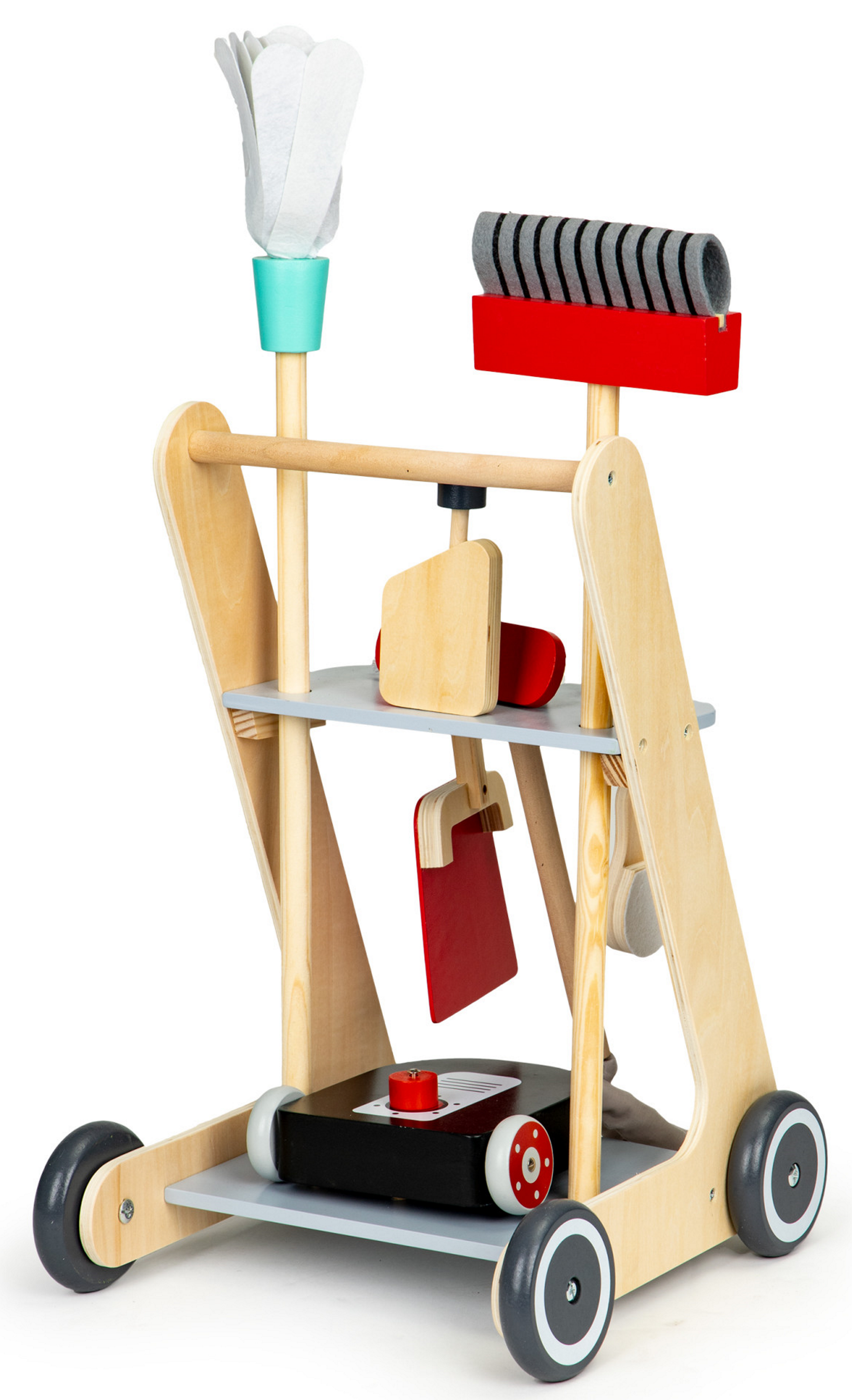Set de joaca Profesional de curatenie din lemn Mother's Little Help idealSTORE, Dimensiuni 35 x 32 x 70 cm, Include Carucior, Aspirator, Matura, Perie, Mop, Perfect pentru copii
