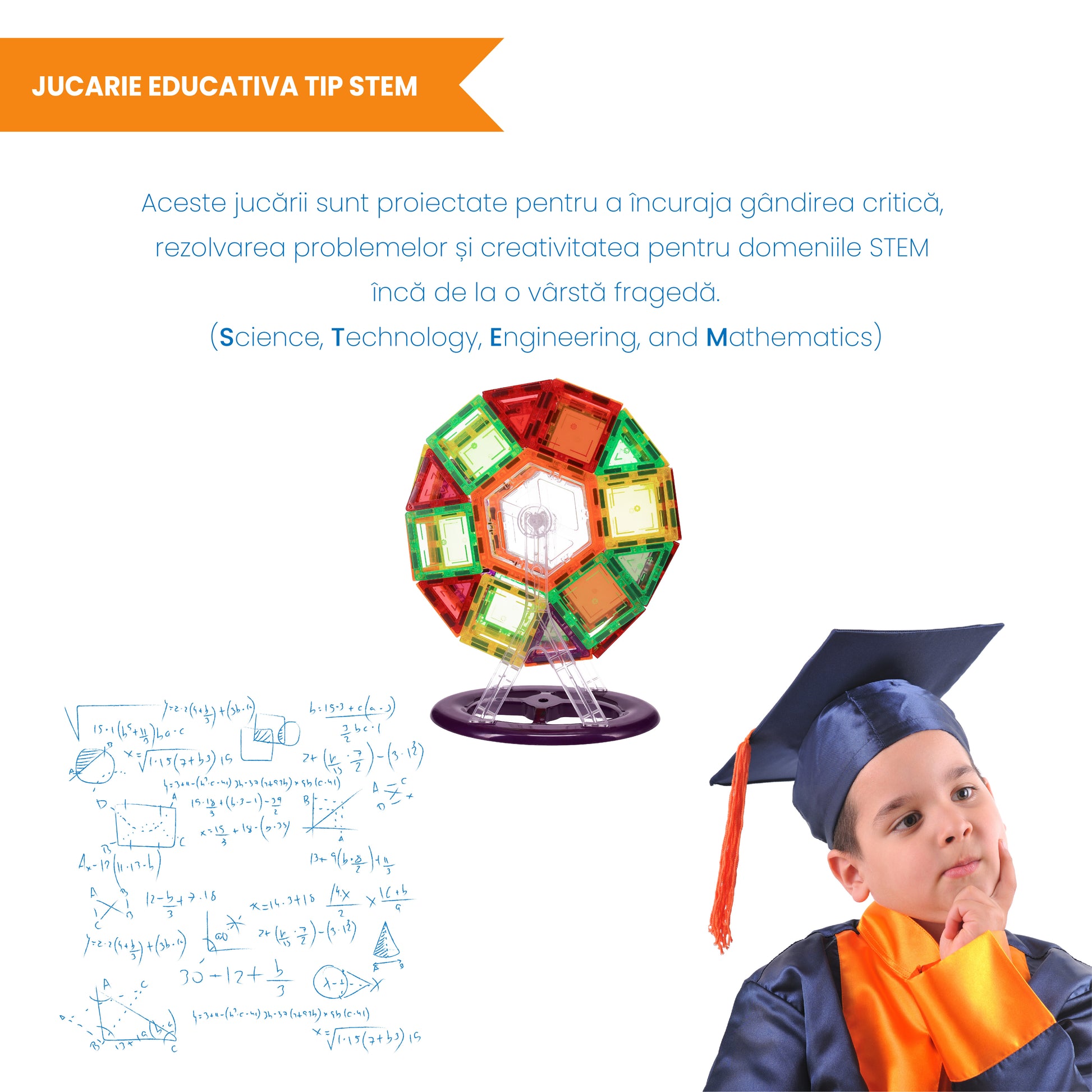 Aceste jucarii sunt proiectate pentru a incuraja gandirea critica, rezolvarea problemelor si creativitatea pentru domeniile STEM inca de la o varsta frageda (Science, Technology, Engineering, and Mathematics).