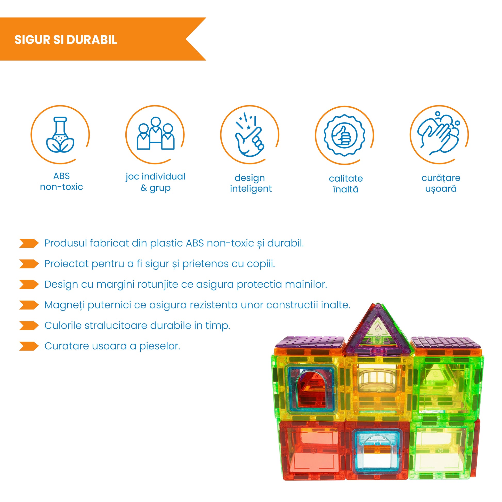 Set Inteligent de Constructie Magnetic IdealSTORE The World of Blocks 3D, dezvolta imaginatia si abilitatile mortice, numeroase posibilitati de construit, Educativ-Creativ, jucarie STEM, include 70 de piese multicolore