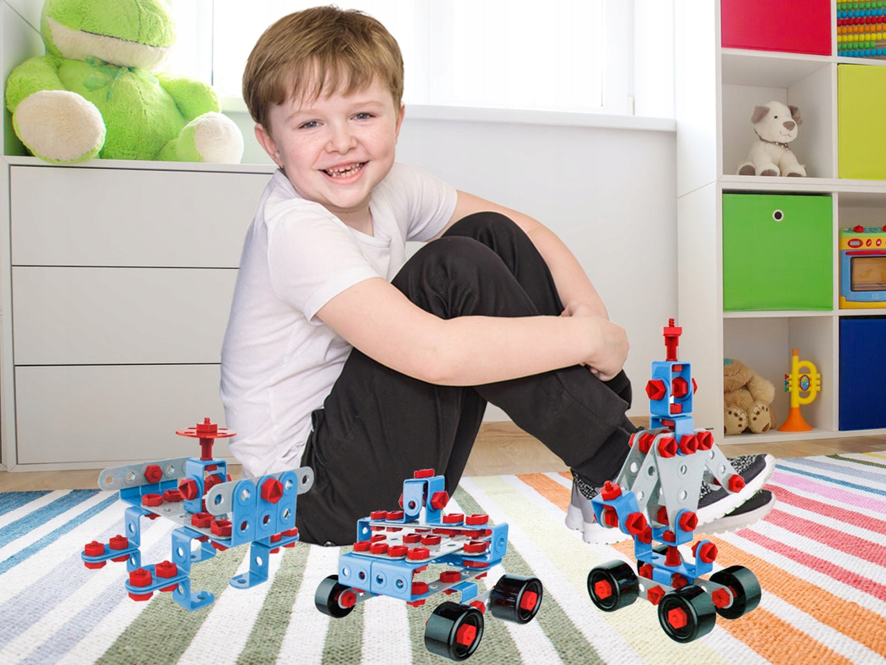 Un mic kit de constructor este ideea perfecta pentru viitorii mici ingineri. Are 247 de elemente, din care putem crea orice constructii, este echipat suplimentar cu o surubelnita care va va permite sa lucrati.