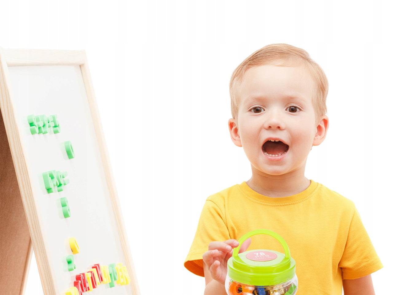 Datorita literelor si cifrelor magnetice, copilul poate invata alfabetul si poate forma diverse cuvinte noi in timp ce se joaca. De exemplu, in bucatarie, pe frigider cand mama gateste.