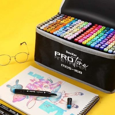 Set Markere Permanente Protone Cu Doua Varfuri 168 Bucati, Culoare Neagra