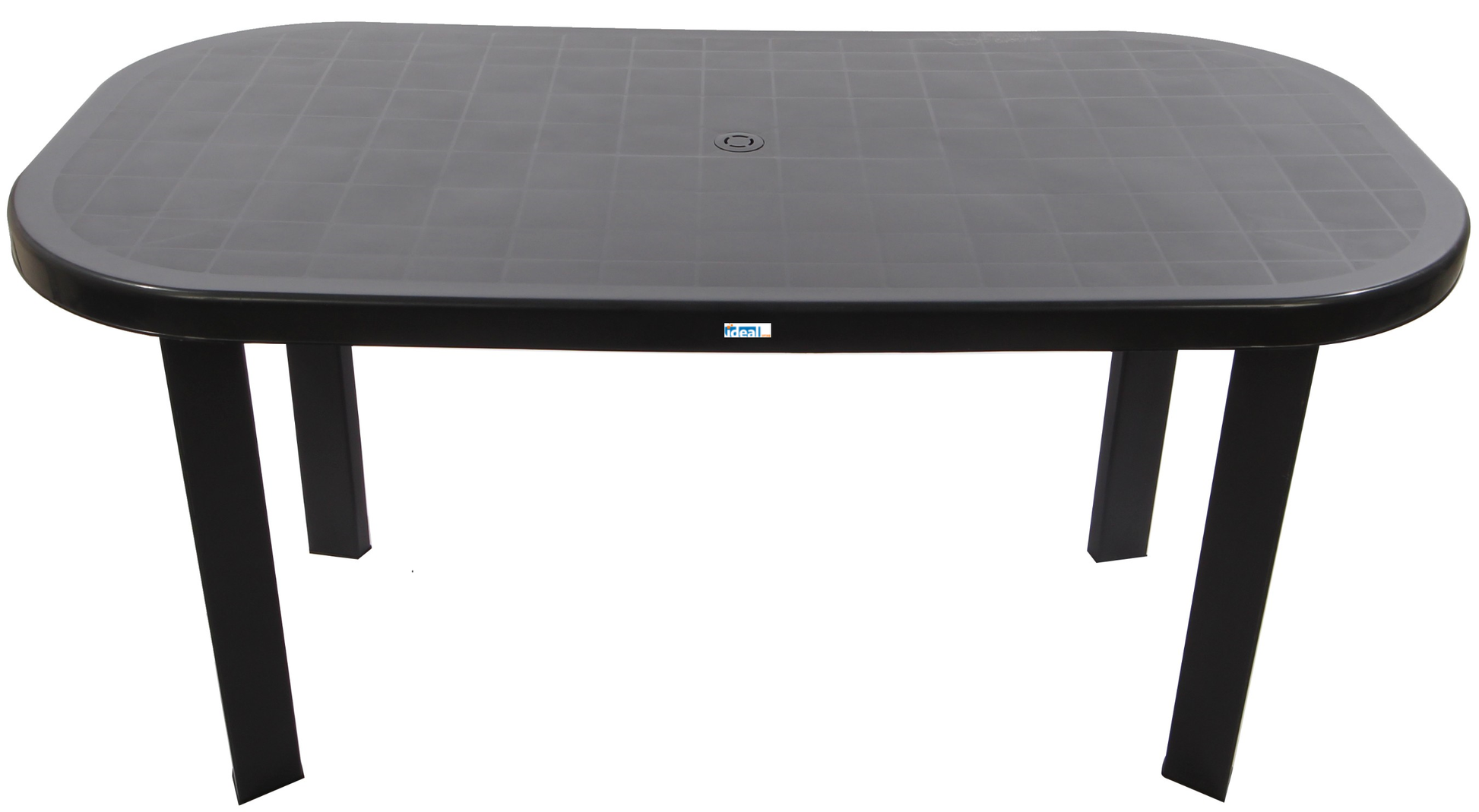 - este fabricata din polipropilena, are blatul de forma ovala si poate fi utilizat pe terase, in gradina sau in interiorul locuintelor.