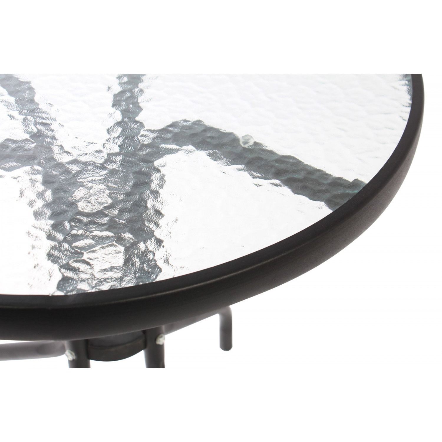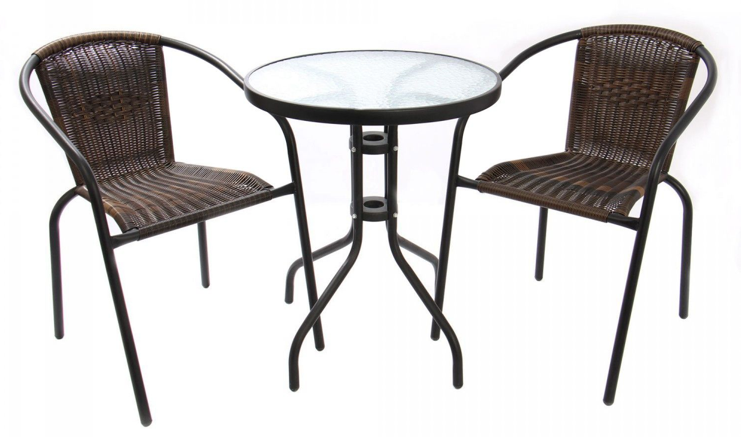 Setul contine 2 scaune fixe, care nu se demonteaza si o masa rotunda, demontabila care se livreaza impreuna cu un blat de sticla de 5 mm grosime.