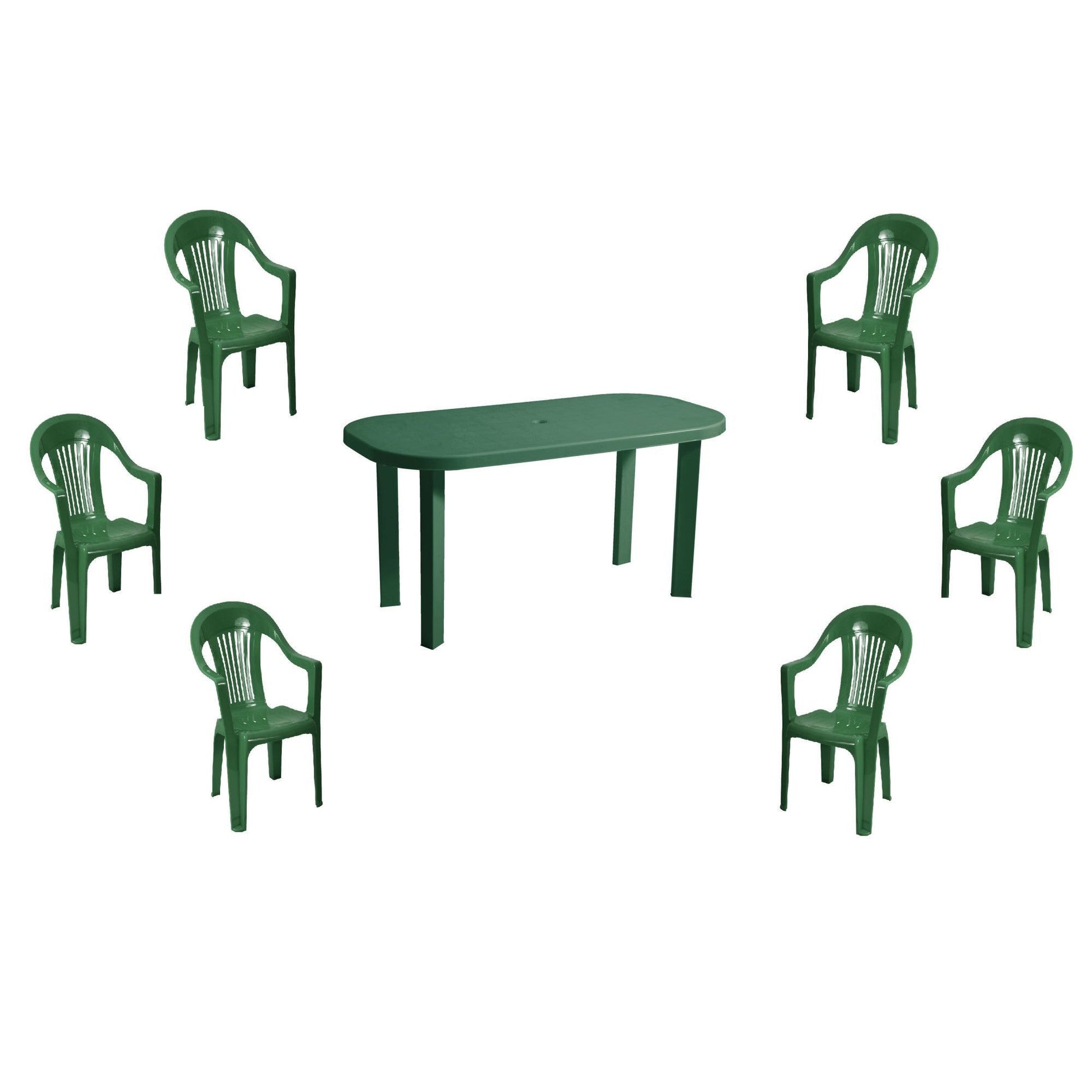 Set masa pentru Gradina IdealStore MELODY cu 6 SCAUNE, Confectionat din Plastic de inalta calitate, Rezistent la umiditate si usor de intretinut, Pentru a petrece momente de relaxare maxima, scaunul este prevazut cu spatar si brate laterale, Culoare-Verde