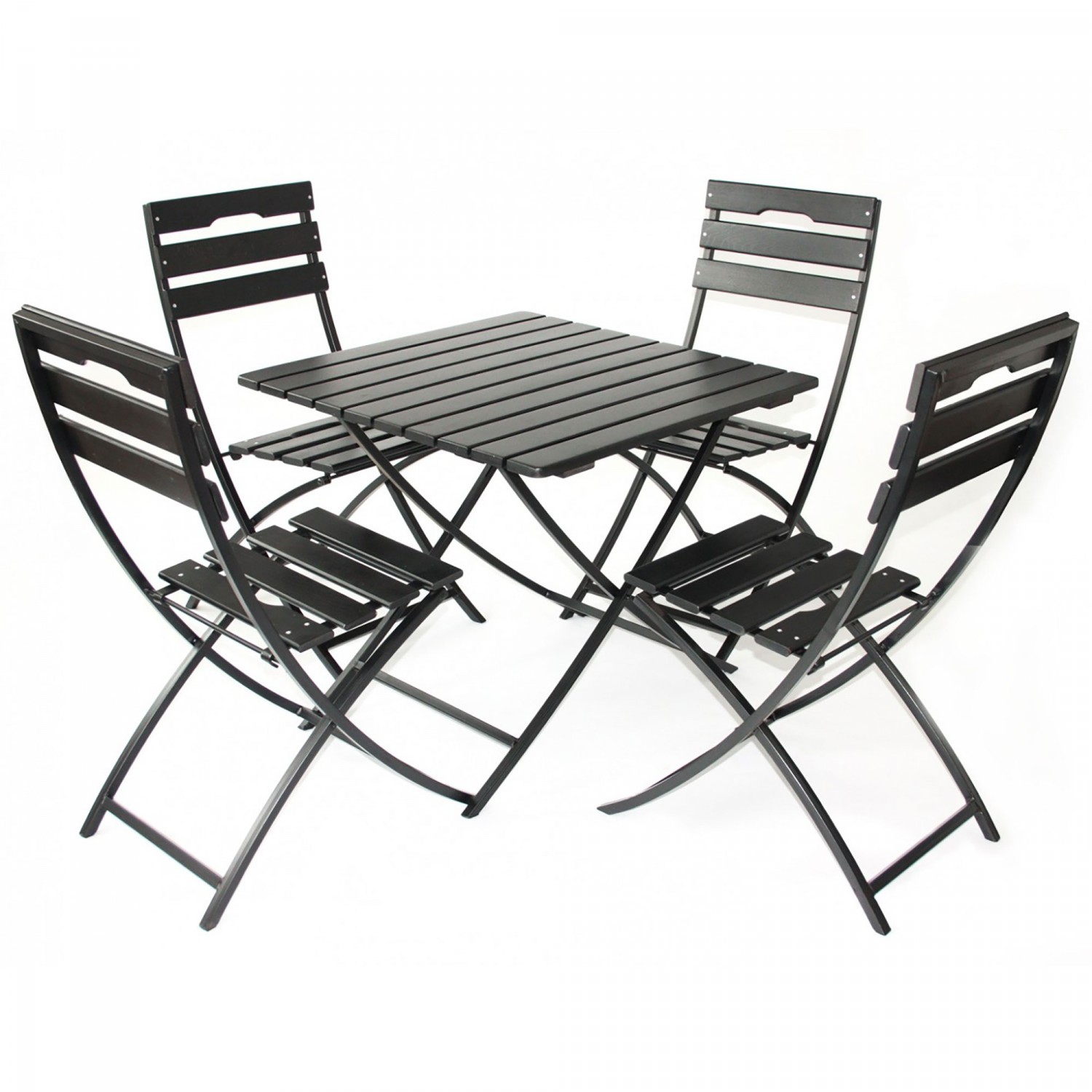 Set masa pentru Gradina IDL CORONA cu 4 SCAUNE, Confectionat din LEMN de esenta tare si METAL, Elementele componente sunt tratate pentru a avea o rezistenta sporita la intemperii, Design modern ce creaza o atmosefra eleganta, Culoare-Negru