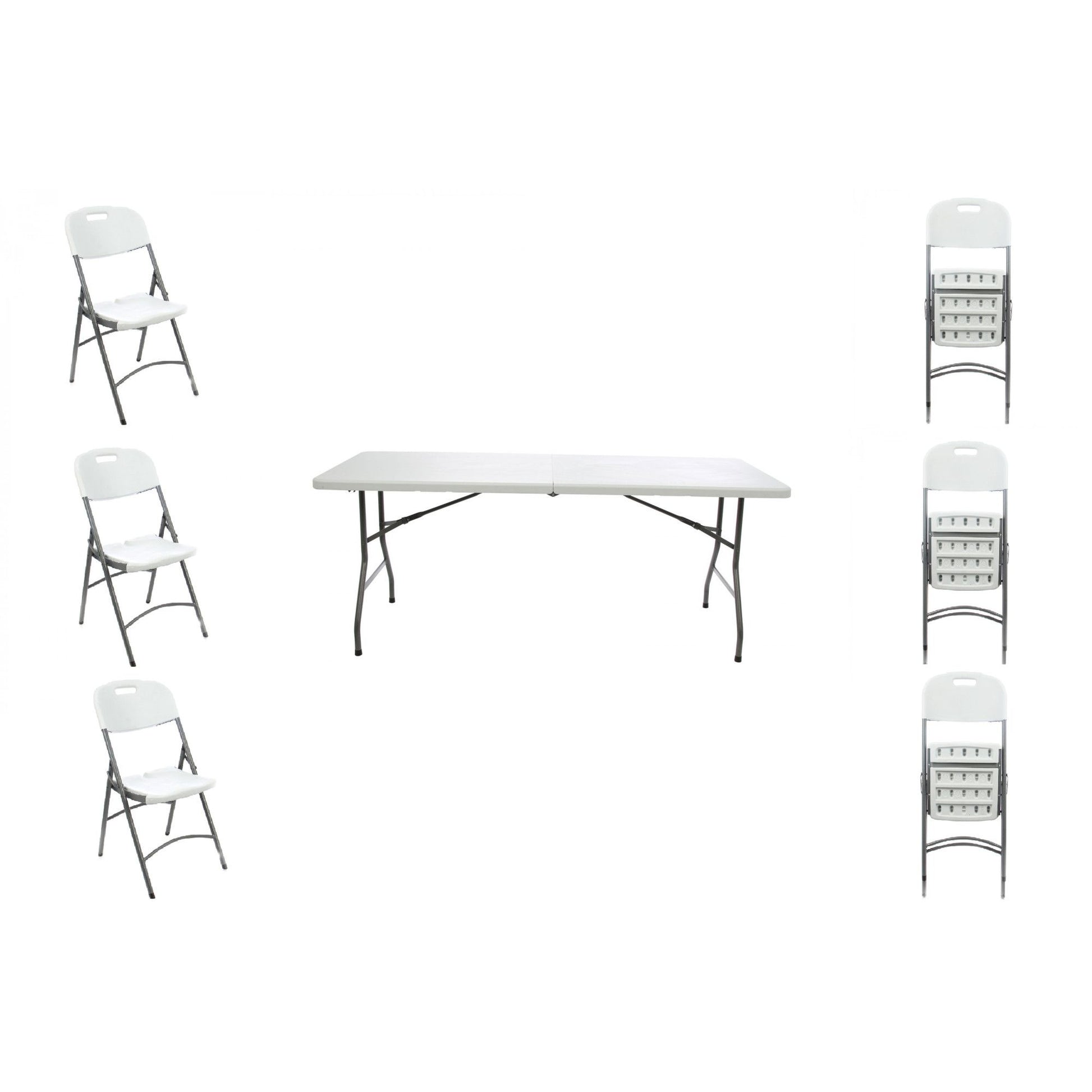 6 x Scaun pentru gradina, pliant, metal + HDPE, alb