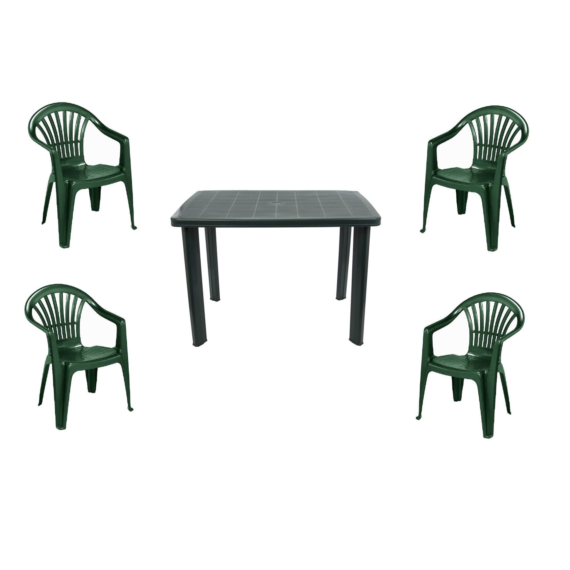 Set masa pentru Gradina, Verde cu 4 SCAUNE, 100x70x72cm, Realizat din plastic de inalta calitate, rezistent la UV