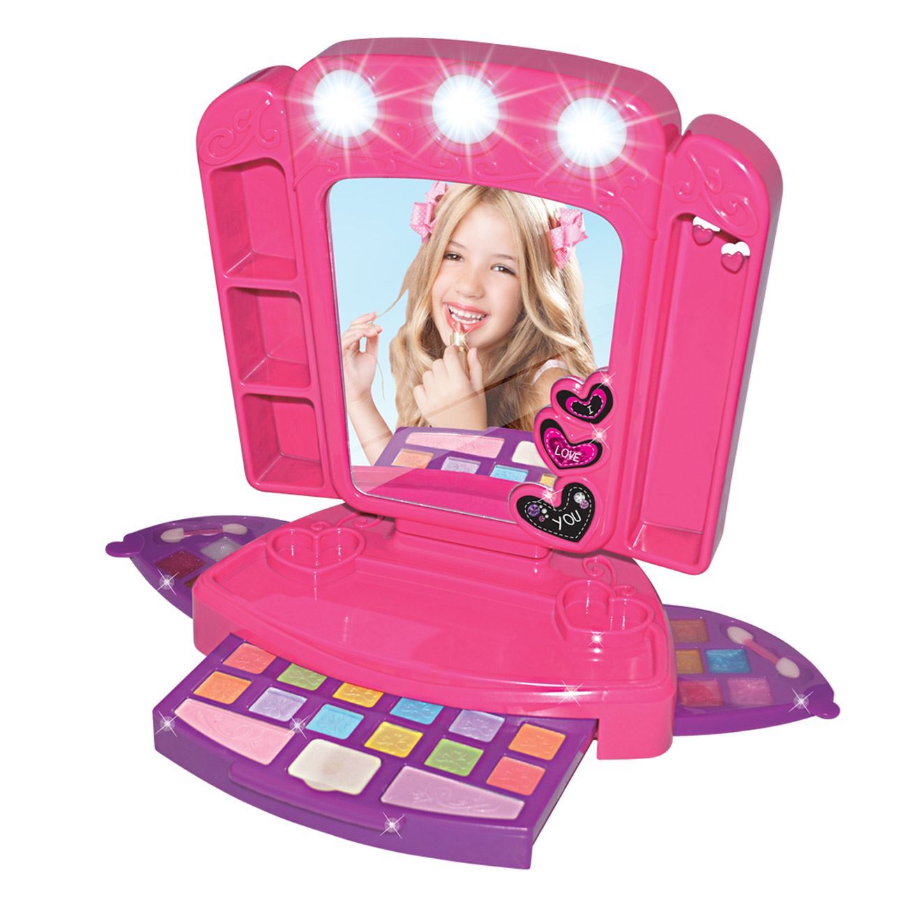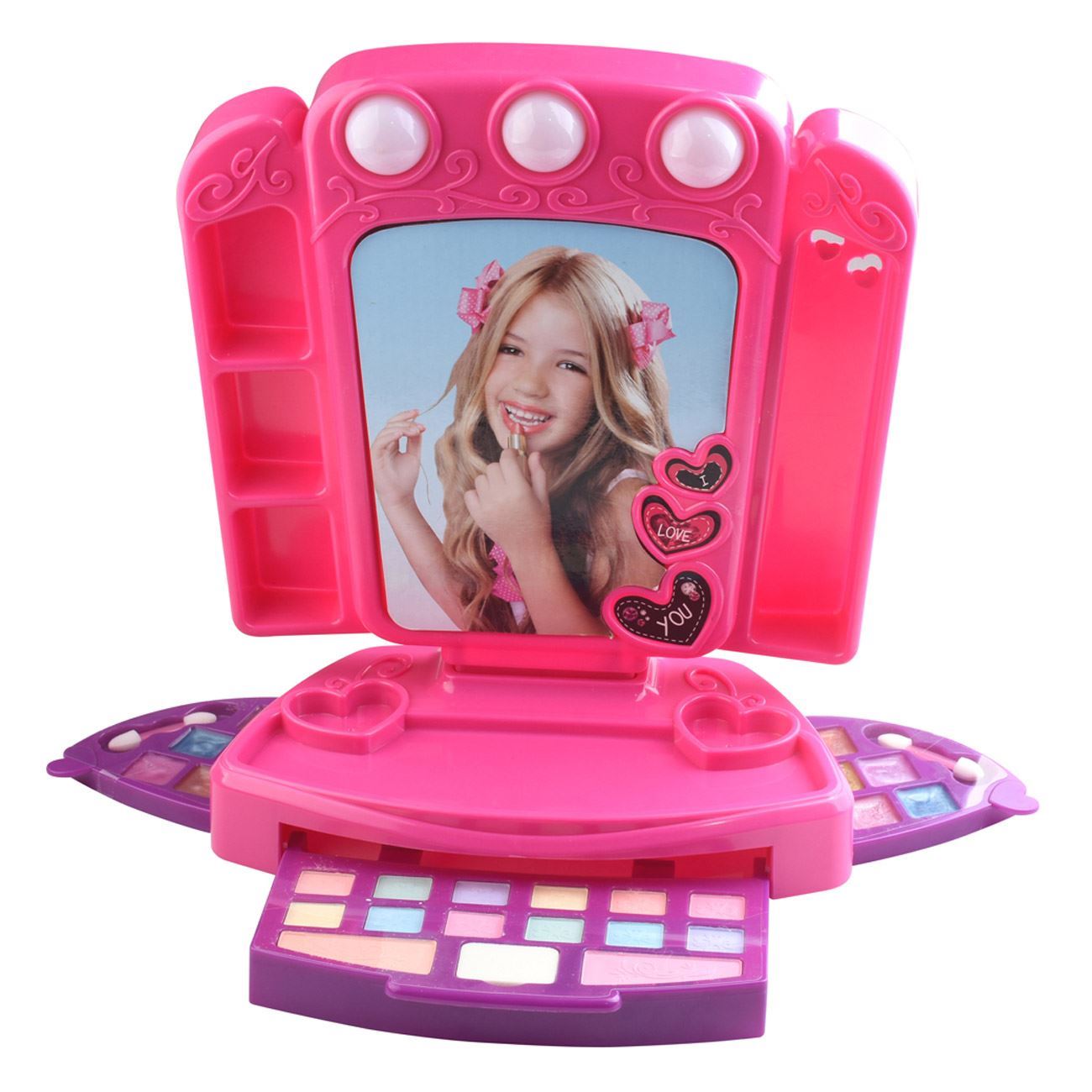Set Masuta De Machiaj pentru Fetite, Oglinda Cu Lumini Si Accesorii, 50 x 9 x 35