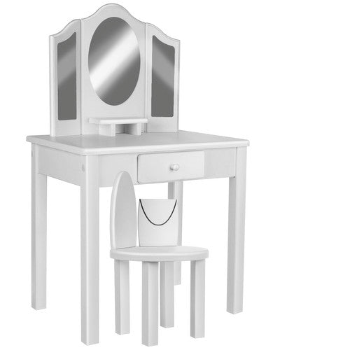 Masuta de toaleta din lemn Ideal Store pentru fete cu oglinzi si sertar pentru depozitare, margini si colturi rotunjite si vopsea organica