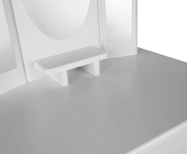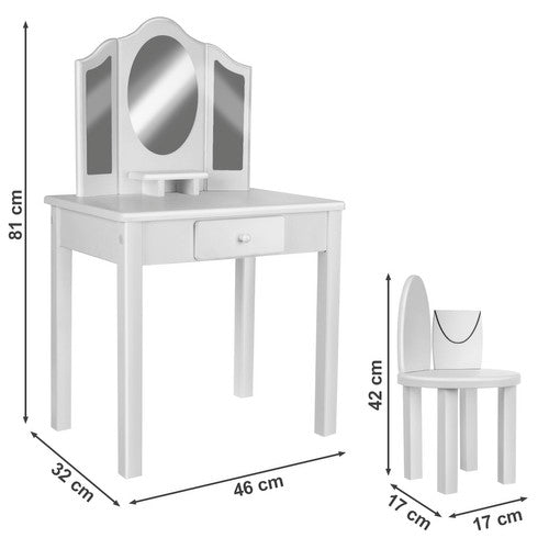 Set Masuta de toaleta din lemn Ideal Store pentru fete cu oglinzi si sertar pentru depozitare, margini si colturi rotunjite si vopsea organica