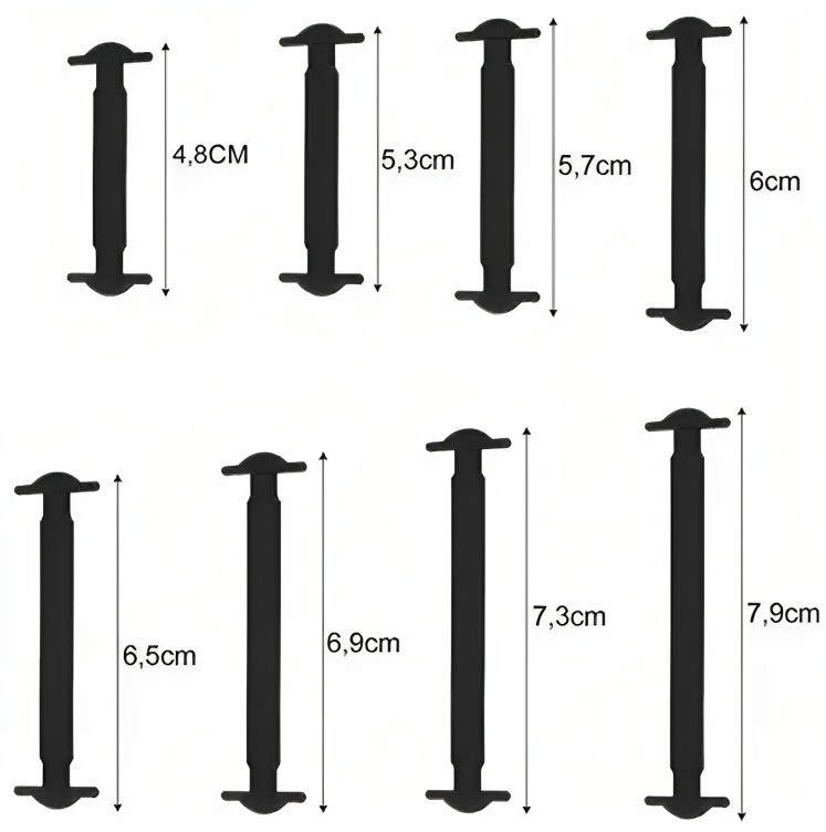 Dimensiuni: 4,8; 5,3; 5,7; 6; 6,5; 6,9; 7,3; 7,9 cm