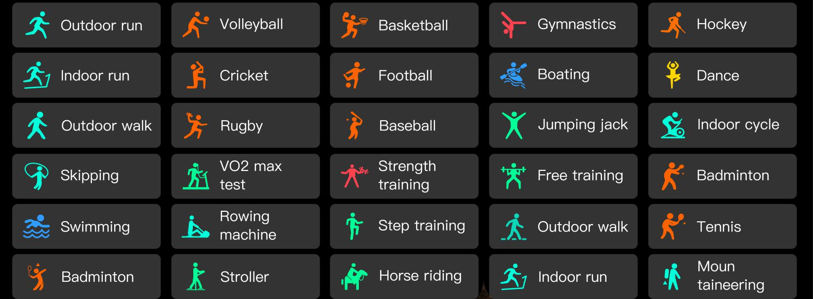 - Moduri Sport: Peste 100 de moduri sportive: alergare, mers pe jos, ciclism, alpinism etc