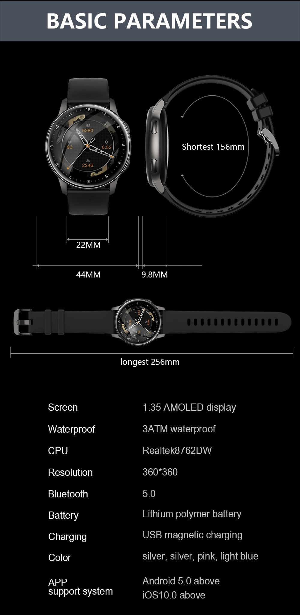 Ecran touchscreen de 1.35" color. Dispune de un afisaj generos cu touch screen de inalta fidelitate (HD) cu o rezolutie spectaculoasa cu 360 x 360 pixeli.
