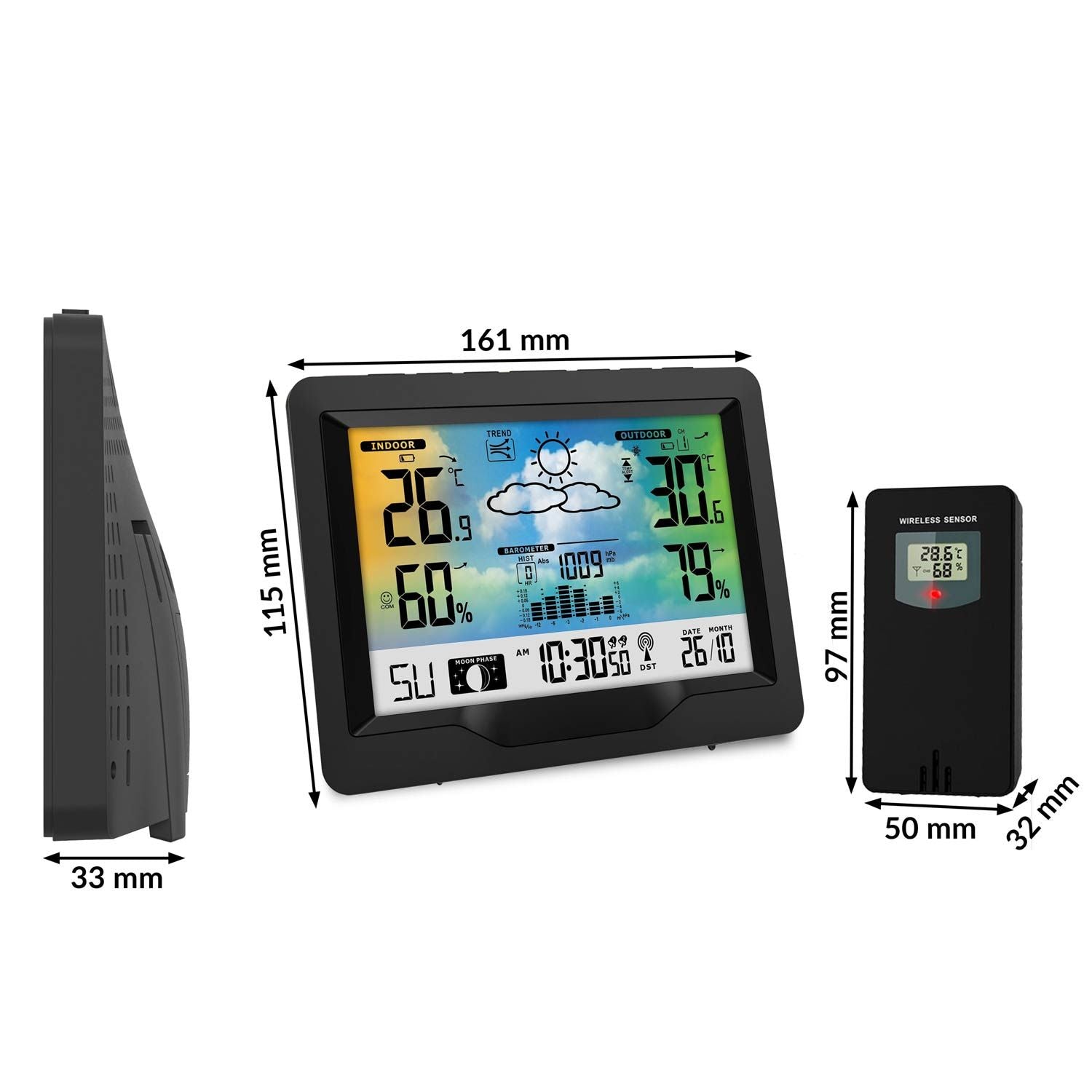 Statie Meteo Profesionala fara Fir idealSTORE, Presiune Barometrica, Calendar, Nivel de confort, Ceas cu alarma, Senzor Baterie, Functie de amanare a alarmei, Prognoza Meteo, Umiditate interioara/exterioara, Raza 60 m