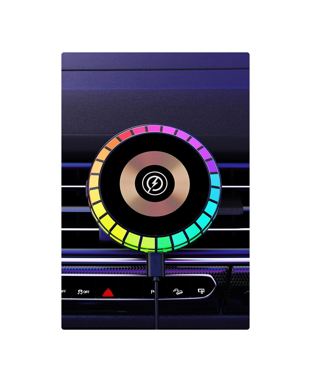 Suportul magnetic auto este un accesoriu util pentru orice sofer in timpul calatoriilor. Se ataseaza la grila de ventilatie, fiind special conceput sa nu blocheze ventilatia.Acesta are si incarcare wireless, dar si un joc de lumini rgb.