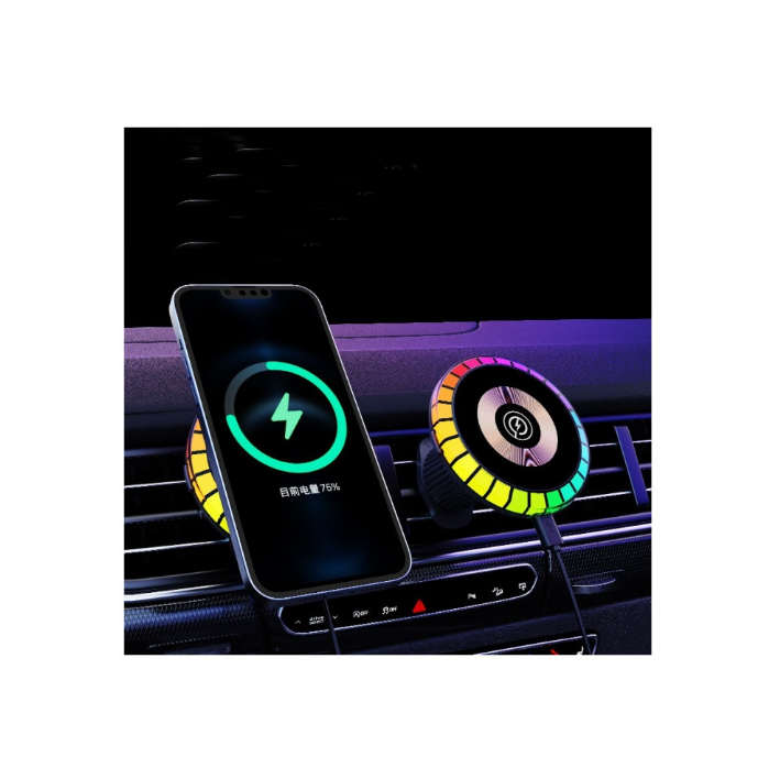 Suport Telefon Magnetic idealSTORE cu Incarcare Wireless, Culoarea se schimba din Aplicatie, Lumina ambientala RGB