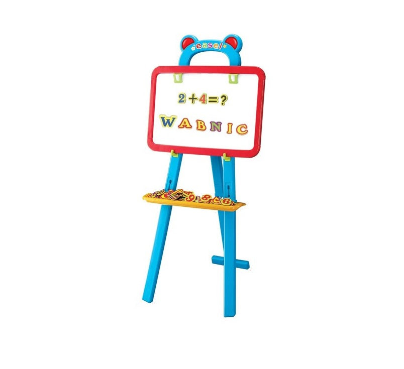 Jocul cu tabla magnetica dezvolta imaginatia , creativitatea si inteligenta copiilor . Produsul ofera acestora posibilitatea de a descoperi lumea literelor prin combinarea literelor si a cifrelor nelimitata a acestora . Tabla include 2 fete : o fata alba magnetica si o fata neagra pentru desen sau scriere cu creta .