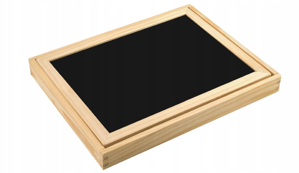 Cadrul tablitei de invãtãmant multifunctional este realizat in intregime din lemn - totul este perfect lustruit si sigur pentru cei mai tineri. Printre modelele educationale magnetice mai avem creta, marker , un burete, o brosurã cu exemple si modele, o tabla cu douã fete pentru magneti si creta . Partea neagrã a plãcii este proiectatã pentru desen cu cretã . Toate desenele de cretã pot fi usor sterse dupã terminarea jocului cu buretele din pachet.Tabla magnetica albã si markerul sunt proiectate pentru desen cu markerul (care se poate sterge , de asemenea cu buretele la sfarsitul jocului), iar aranjarea figurinelor vesele este foarte usor de facut .