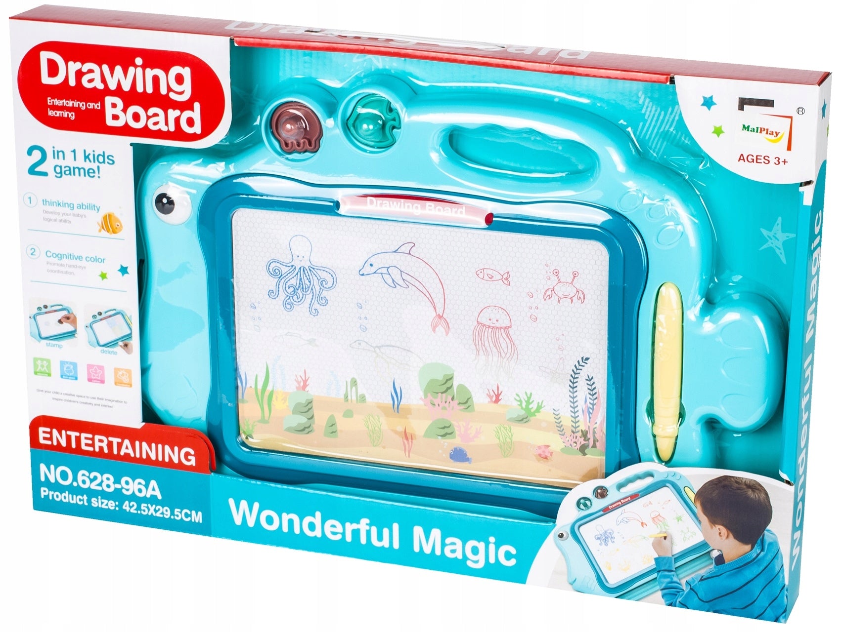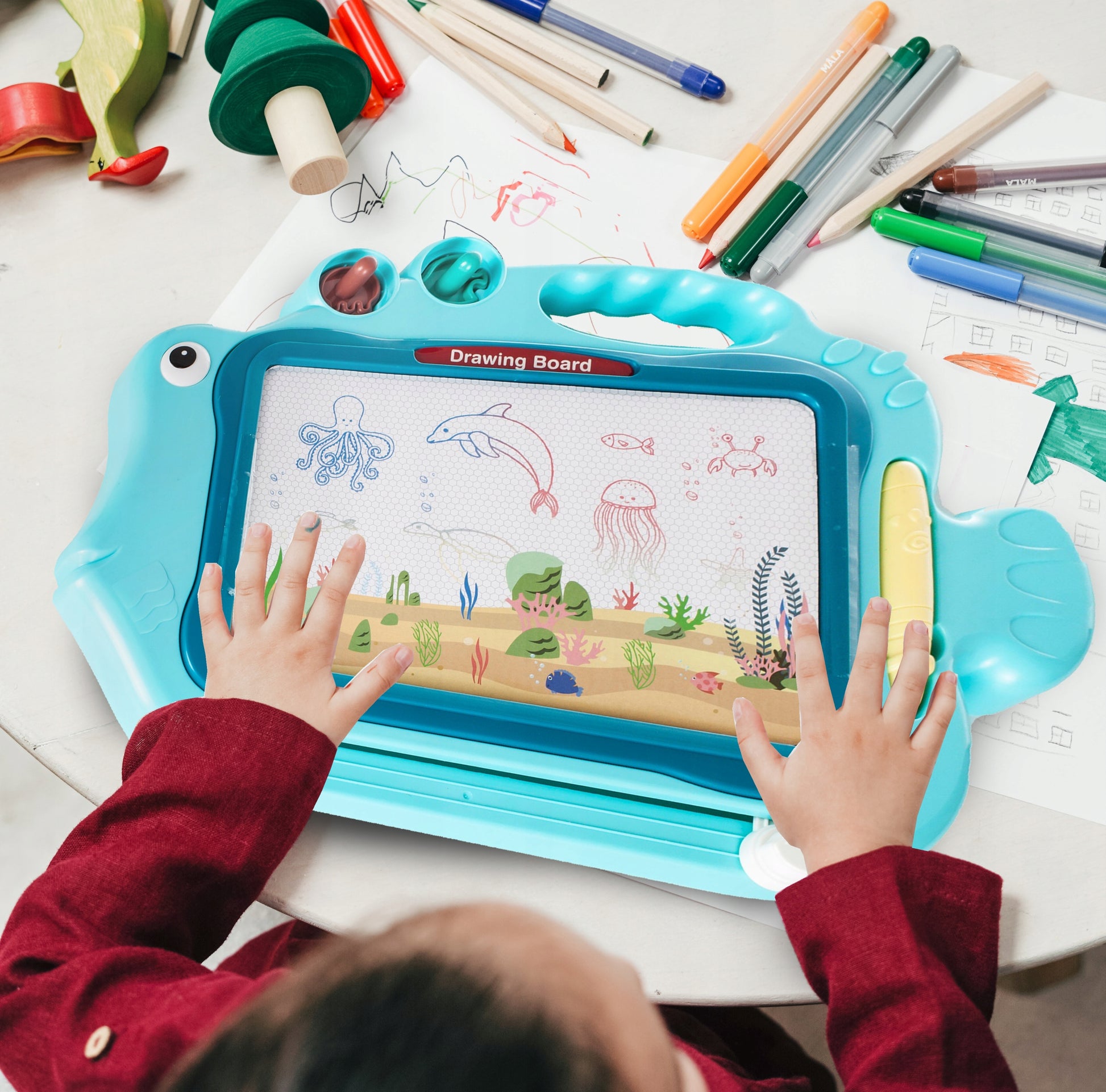 Tablita Magnetica Funny Fish idealStore dezvolta abilitatile de scriere si desen, avand un efect pozitiv asupra coordonarii mana-ochi a unui copil.