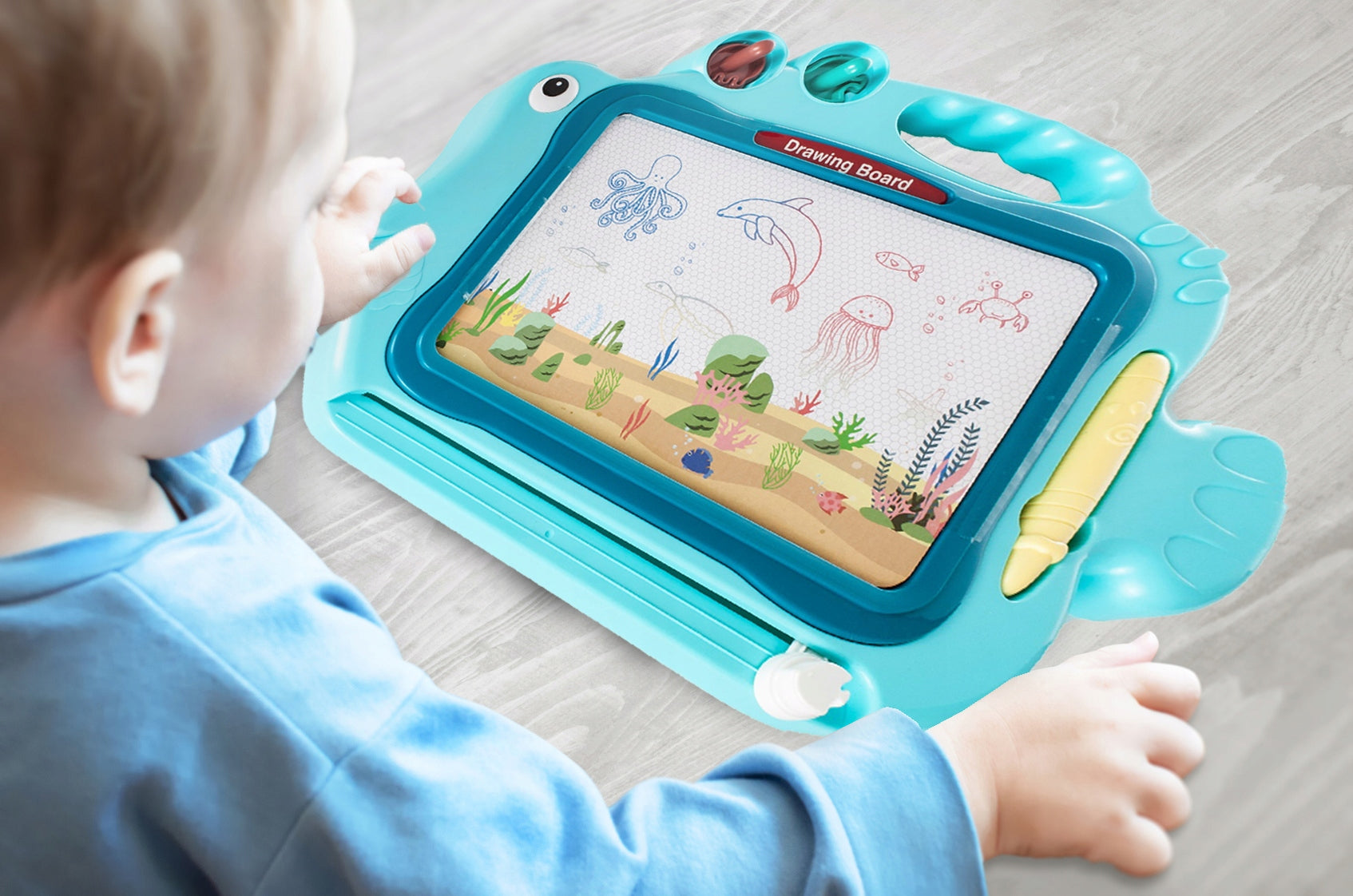 Ajuta-l pe copilul tau sa descopere adevaratul artist cu aceasta tablita magnetica de scris Funny Fish idealStore !