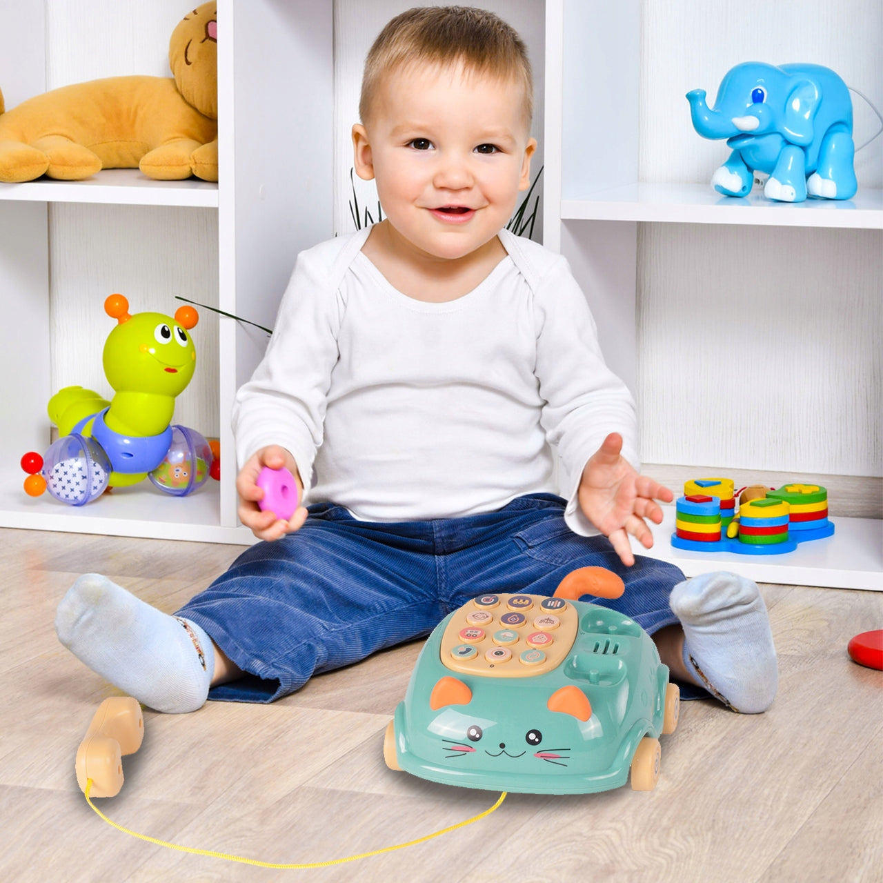 Telefonul Interactiv Stil Pisicuta Happy Cat idealStore este o jucarie multifunctionala care poate fi utilizata pentru a dezvolta capacitatea de coordonare a mainii-ochi a copilului.
