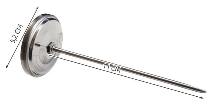 Termometru Metalic Alimentar pentru carne idealSTORE, Dimensiuni 11x5,2 cm, Analogic, Include o Tija Metalica pentru Insertie, Fara mercur, Temperatura 0-120C, Inox, Include un capac pentru Ascunderea Sondei
