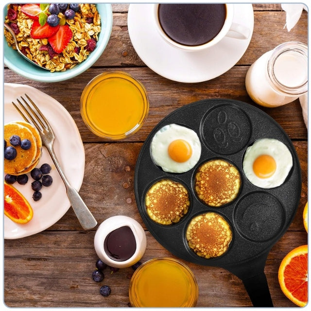 Sapte mini clatite amuzante/oua: Partenerul perfect pentru diminetile pline de savoare! Aceasta tigaie inovatoare iti permite sa prepari clatite si oua in 7 forme diferite, aducand un strop de veselie in bucataria ta.