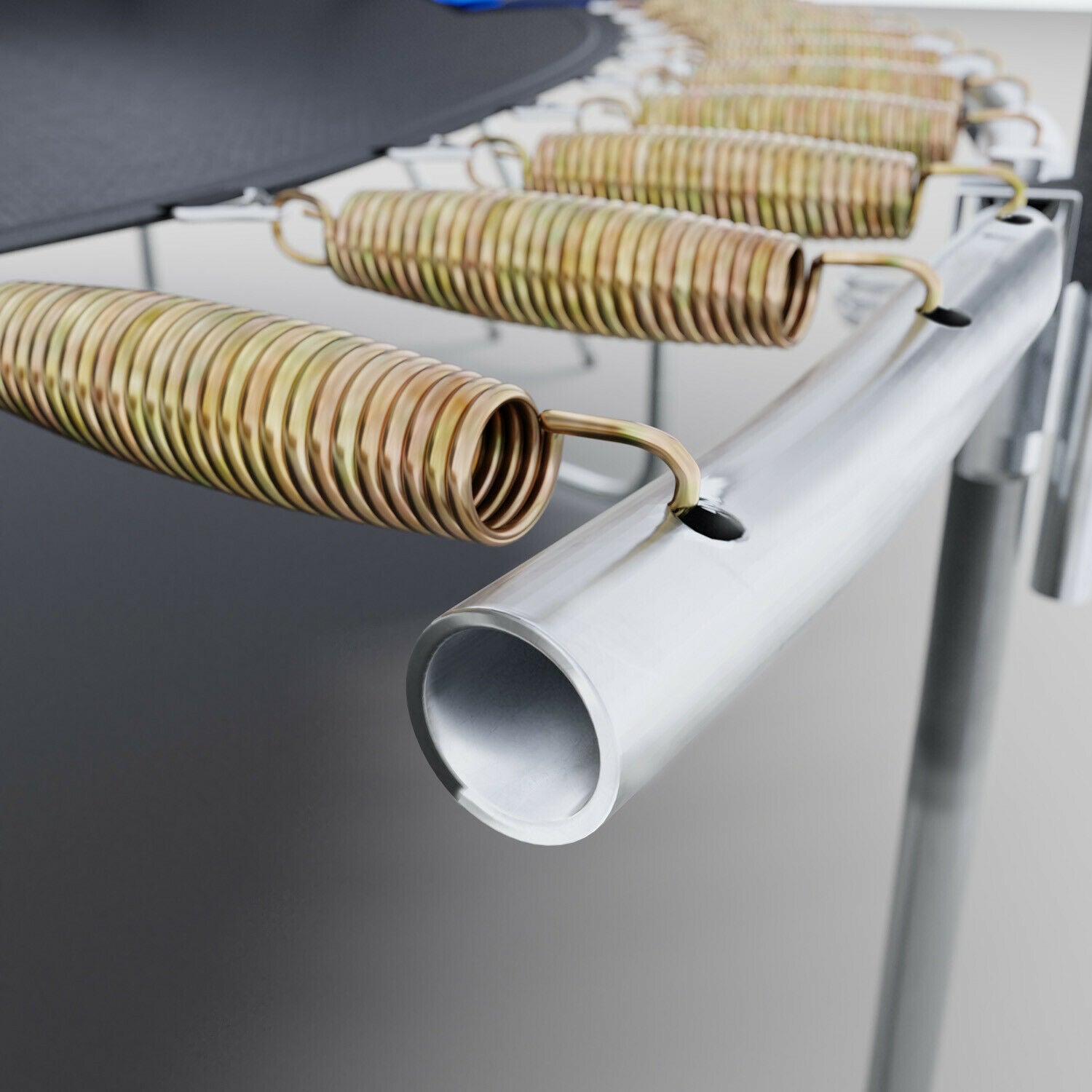 Trambulina de 305cm este un model bine cunoscut, cu un diametru impresionant de 305 cm. Picioarele forjate, arcurile din otel si ochiurile fixate cu fermoar pe cadru asigura confortul utilizarii si stabilitatea structurii.