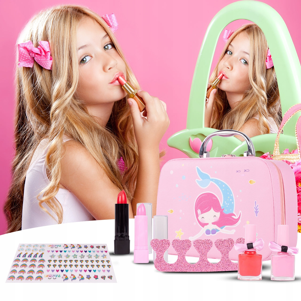Setul de machiaj perfect pentru fetite. Cu acest set, copiii isi pot dezvolta abilitatile sociale si pot invata jocul de rol.