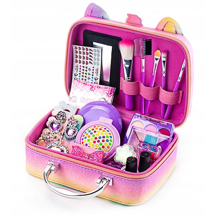 Trusa de Make-up si Accesorii Styling idealSTORE Unicorn, Cosmetice Reale, Non-Toxice, Accesorii Styling Reale, Dezvolta Abilitatile Manuale, 24 Articole, Tema Unicorn, cu Geanta de Depozitare