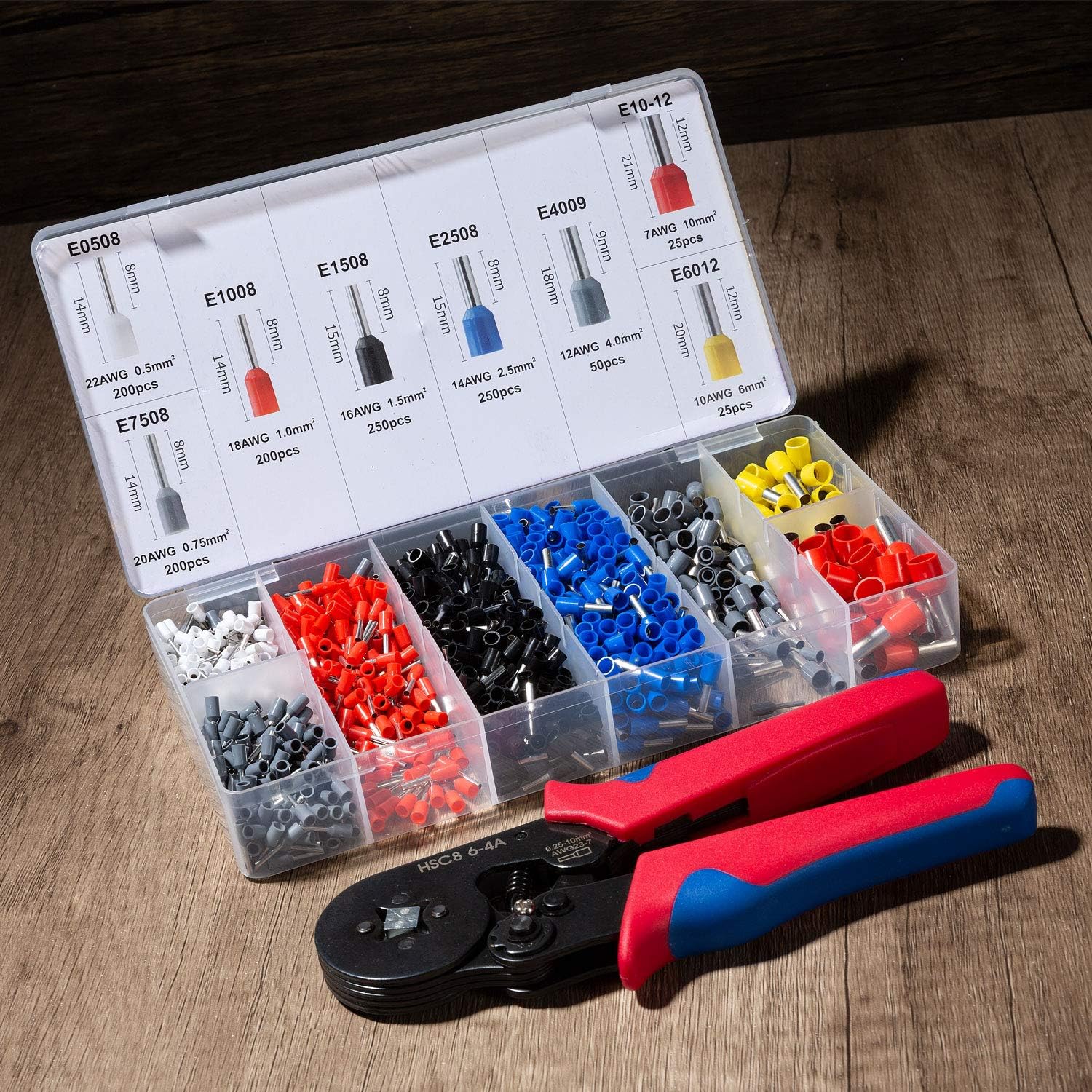 Trusa Sertizare Cabluri Electrice idealSTORE, Cleste Sertizat Reglabil, Domeniu de sertizare 0,25-10 mm2 ,Include 500 de Terminali, Usor de Utilizat, Calitate inalta a Materialelor, Rezistenta Mare la socuri Forta de tractiune