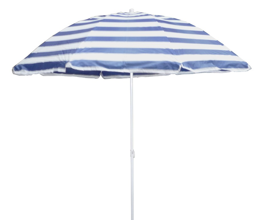 Umbrela SOARE pentru terasa IDL Blue Time, Cu structura de Metal, Forma Rotunda cu Diametru de 180 cm, Ideala pentru folosirea in aer liber, in gradina sau pe malul marii, Culoare-Albastru-Alb